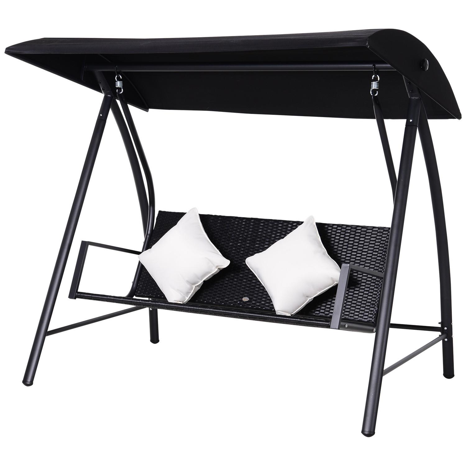 Northio 3-Sitzer Hollywoodschaukel Schaukel Polyrattan Metall Mit Kissen Belastbar Bis 360Kg Neu (Schwarz)