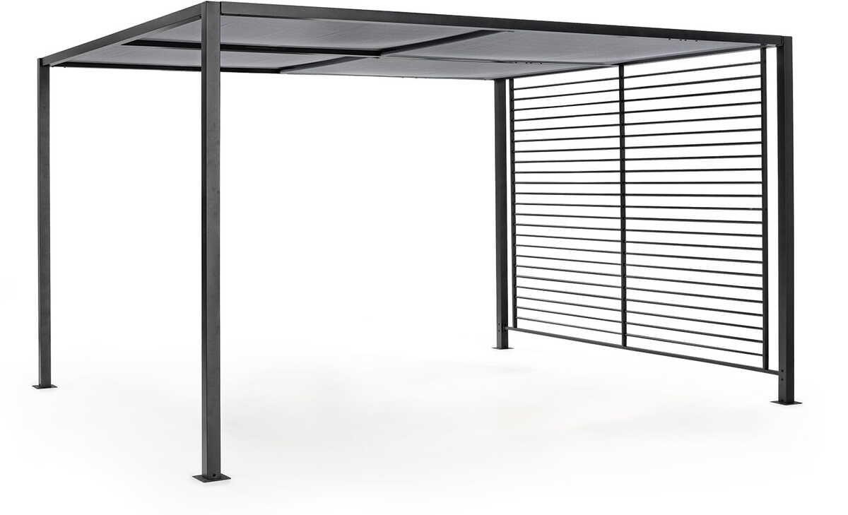 Garten-Pavillon mit Gestell aus Aluminium (Pulverbeschichtet, Polyester) und Schiebedach aus grauem Textilene. Pfosten 65x65mm, Produkt muss montiert werden.