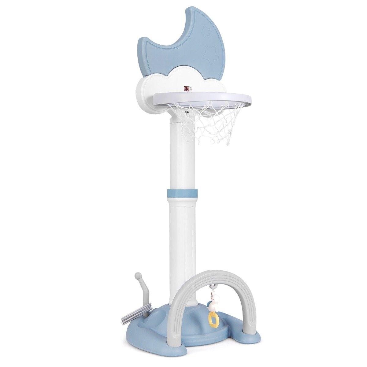 Northix, 4 in 1 Kinder Basketballkorb Set mit Basketball & Fußball & Ringwurf Basketballständer Blau