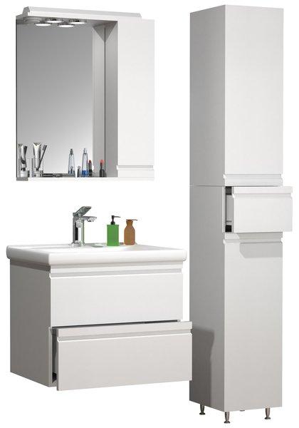 VCM, 4-tlg. Waschplatz Waschtisch 60 cm Badmöbel Set Waschbecken grifflose Schublade Spiegelschrank Hochschrank Silora L