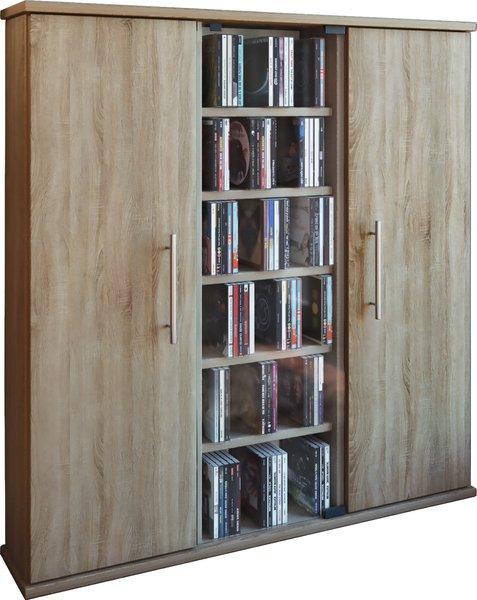 VCM, CD Regal Holz | CD Schrank mit 1 ESG-Sicherheitsglastür und 2 Holztüren für 450 CDs oder 195 DVDs oder 108-Videos | Maße: H. 92 x B. 86 x T. 18 cm |