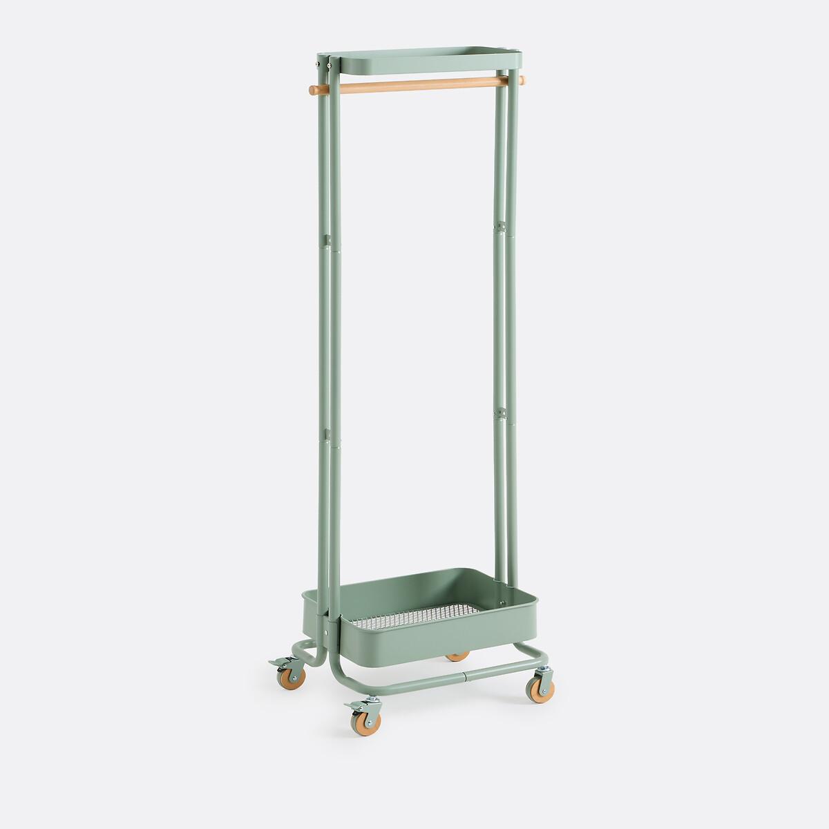 Der auf Rollen montierte Kleiderständer Tania aus Eisen und Heveaholz ist eine tolle Aufbewahrungslösung für Ihre Kleidung.