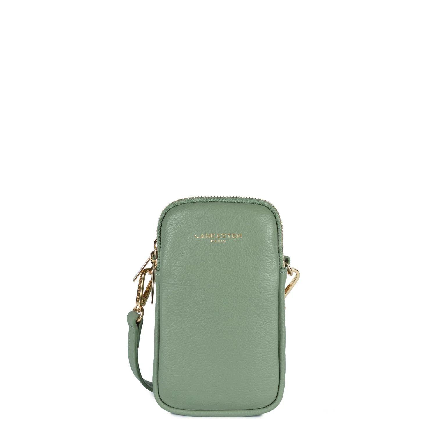 Die Dune Handy-Tasche ist ein schickes und elegantes Accessoire für Abende, Events oder das Büro. Diese Handy-Tasche ist für bequeme Aufbewahrung und raffinierten Stil konzipiert. Sie besteht aus hellgrün genarbtem Leder mit einem Polyester-Futter für optimale Haltbarkeit. Die Tasche misst 10 x 17 x 4 cm und verfügt über einen verstellbaren Riemen mit Reissverschlüssen und goldfarbenen Verschlüssen. Das Markenlogo ist in Gold auf der Vorderseite der Tasche geprägt. Diese Tasche ist ideal, um ein Telefon, Schlüssel und andere kleine Accessoires diskret und elegant zu transportieren.