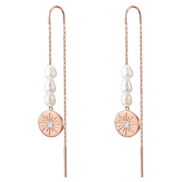 Sie tragen am liebsten extravaganten, aber stilvollen Ohrschmuck? Diese Ohrhänger des Labels Valero Pearls betören nicht nur durch den exklusiven Schimmer der barockförmigen Süßwasser-Zuchtperlen, sondern auch mit ihrem trendigen Durchzieher-Design. Je drei Perlen und ein kleines Medaillon mit Sonnengravur sind an einem zierlichen Ankerkettchen befestigt und werden an einem Stäbchen einfach durch das Ohrloch gezogen. Ein Preciosa-Kristall setzt Glamour-Akzente. Die Ohrhänger sind aus 925er Sterlingsilber gefertigt und mit einer Rosévergoldung veredelt. Ein perfektes Geschenk für Perlen-Liebhaberinnen!