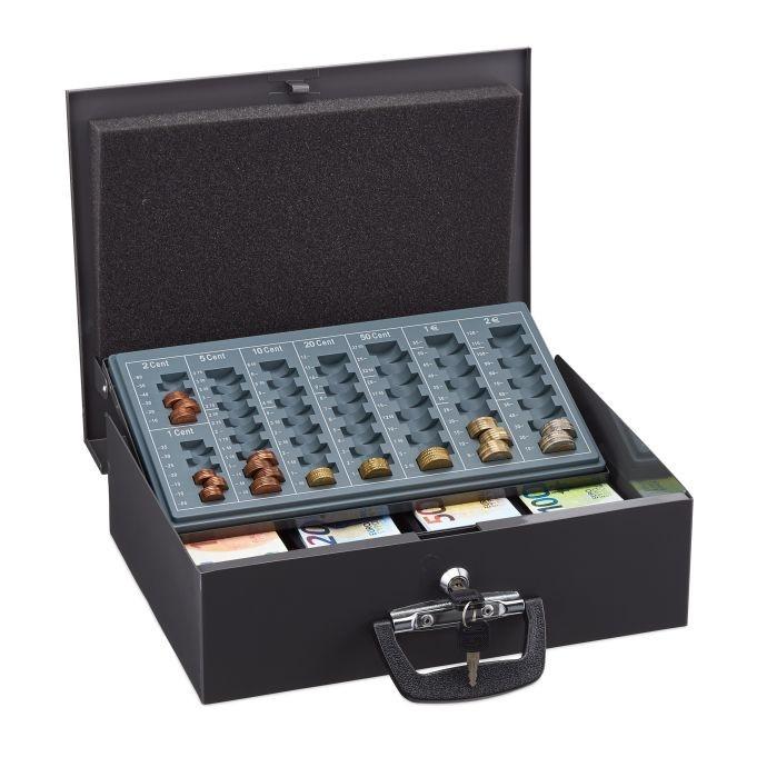 Suchen Sie nach einer sicheren Lösung, um Ihr Bargeld aufzubewahren? Diese abschließbare Geldkassette ist die perfekte Wahl sowohl für zu Hause als auch für verschiedene Veranstaltungen wie Flohmärkte, Messen und Festivals. Mit 4 Fächern für Geldscheine und einem Münzfach, in dem Sie Münzen nach Wert sortieren können, erhalten Sie einen klaren Überblick über Ihr Geld. Darüber hinaus können Sie den Kontostand bequem über den integrierten Taschenrechner ablesen. Die Geldschublade ist mit einem sicheren Schloss und praktischen Tragegriffen für den einfachen Transport ausgestattet.