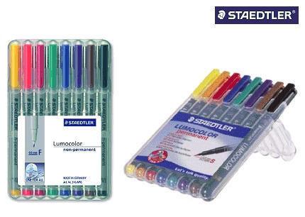 LUMOCOLOR - non-permanent Universalstift Der Universalstift für fast alle Oberflächen von STAEDTLER ist besonders für Overhead-Projektion geeignet und ist feucht abwischbar von Folien! Die non-permanente und geruchsarme Tinte trocknet sekundenschnell und ist auch für Linkshänder geeignet. Wasserlösliche Tinte Sekundenschnell trocken Feucht abwischbar von Folien Airplane safe - automatischer Druckausgleich verhindert das Auslaufen des Stiftes im Flugzeug Höchste Farbbrillanz Schaft und Kappe aus PP garantieren lange Lebensdauer Lichtbeständig