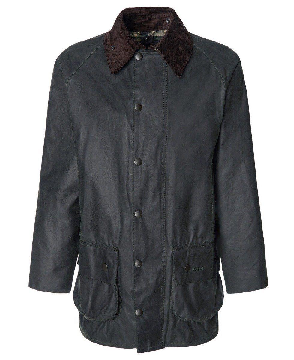 Die Beaufort Wax Jacket ist mit sechs sichtbaren Knöpfen zum Verschließen sowie zwei großen Klapptaschen auf jeder Seite, in der Nähe des Bundes, ausgestattet. Ein kleines Barbour-Logo ist auf einer der unteren Taschen auf der rechten Seite bestickt, was auf die Marke hinweist. Die Ärmel sind lang, so dass es eine ideale Jacke für Outdoor-Aktivitäten ist.