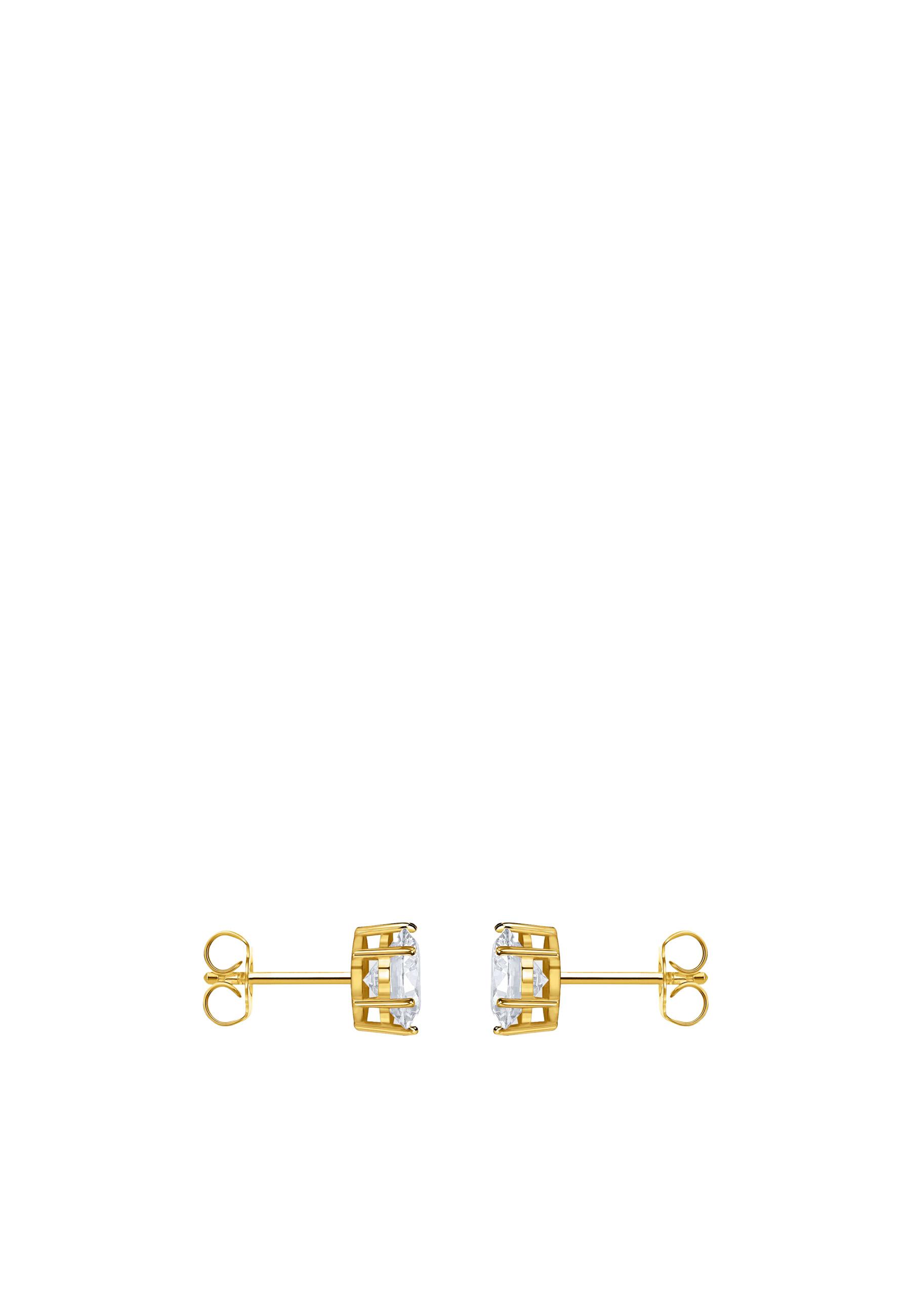 Ohrstecker für Frauen aus recyceltem Silber mit 18-karätiger Goldplattierung Mit einem weißen Zirkonia-Stein im Brillantschliff Eleganter Ohrschmuck, der zu jedem Outfit passt Zeitloser Ohrschmuck für den Alltag: Diese Ohrstecker sind aus recyceltem Silber mit 18-karätiger Vergoldung gefertigt. In ihrer zarten, offenen Zackenfassung ist ein weißer Zirkoniastein mit Brillantschliff gefasst. Bei Lichteinfall funkeln und glänzen sie besonders intensiv. Diese goldfarbenen Ohrstecker passen perfekt zu jedem Business-, Freizeit- oder eleganten Look.