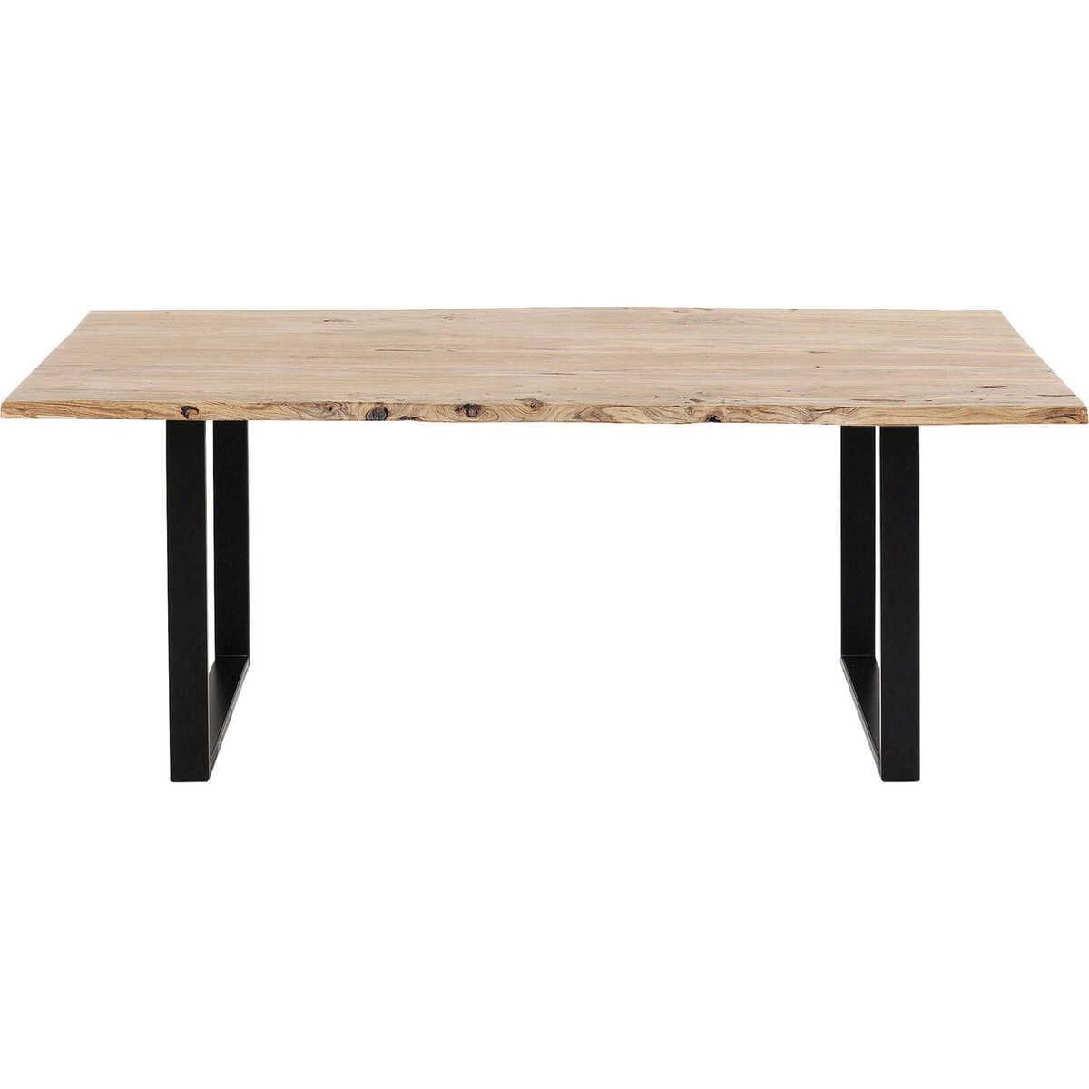 Massives Akazienholz und Stahlgestell stecken Familientreffen, Spieleabende mit Freunden und wilde Partys locker weg. Untersetzer vergessen? Auch nicht tragisch. Die gebeizte und lackierte Oberfläche hält jede Menge aus. Die natürlich geformten Längskanten wirken lässig und natürlich. Sehr schön funktioniert der lange Tisch auch als grosszügiger Arbeitsplatz.Rechteckiger Esstisch aus Massivholz mit schwarz lackiertem Stahlkufengestell und organisch geformter TischplatteWirkt natürlich und ist aus besonders hartem und robustem AkazienholzBietet spielend Platz für sechs bis acht PersonenDer Holztisch lässt sich ganz selbstverständlich in jeden Wohnstil integrierenEin grundsolides Möbelstück mit einzigartigem Charakter garantiert ein Freund fürs LebenProduktinformation Tischplatte: Akazie Massivholz gebeizt-lackiert, Beine: Stahl pulverbeschichtet, 72,50 x 75 x 7,50 cm Gestell - Fuss, 3,50 cm Plattenstärke, 200 kg max. Belastbarkeit, handgefertigt, Lieferung zerlegt, Einstellschrauben der Fussbodengleiter um Höhenunterschiede des Bodens auszugleichen.