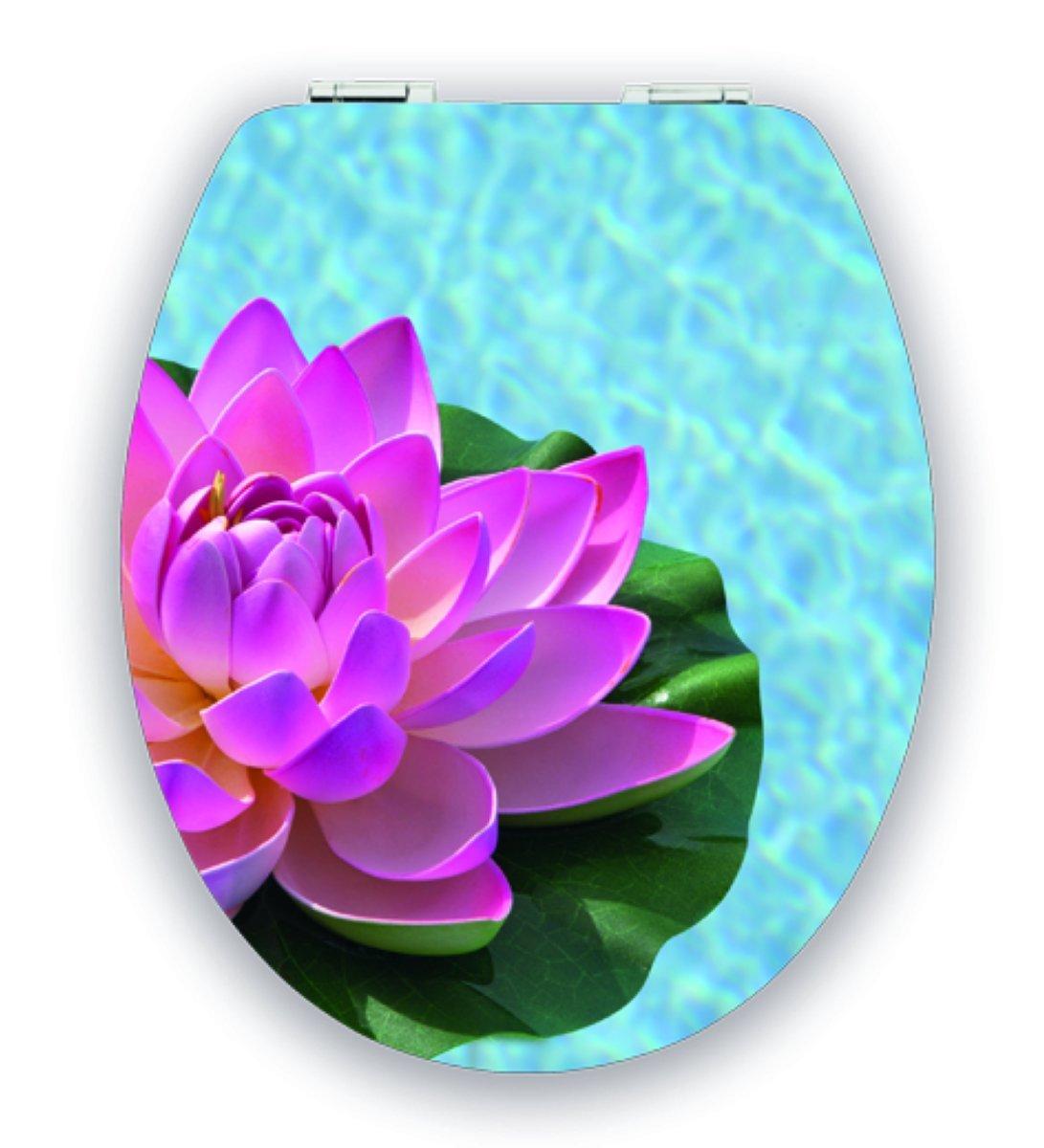 diaqua® WC-Sitz Brillant Slow Down Lotus - MDF - FSC® 100% 42 - 47 X 37.8 CM - WC-Sitz mit Absenkautomatik für sanftes Schliessen von Deckel und Brille (Slow Down). Rasche Montage durch verstellbare und einfache Befestigung, aus pflegeleichtem und langlebigem MDF, universelle Passform für alle handelsüblichen WC-Anlagen, inkl. Befestigungsmaterial.
