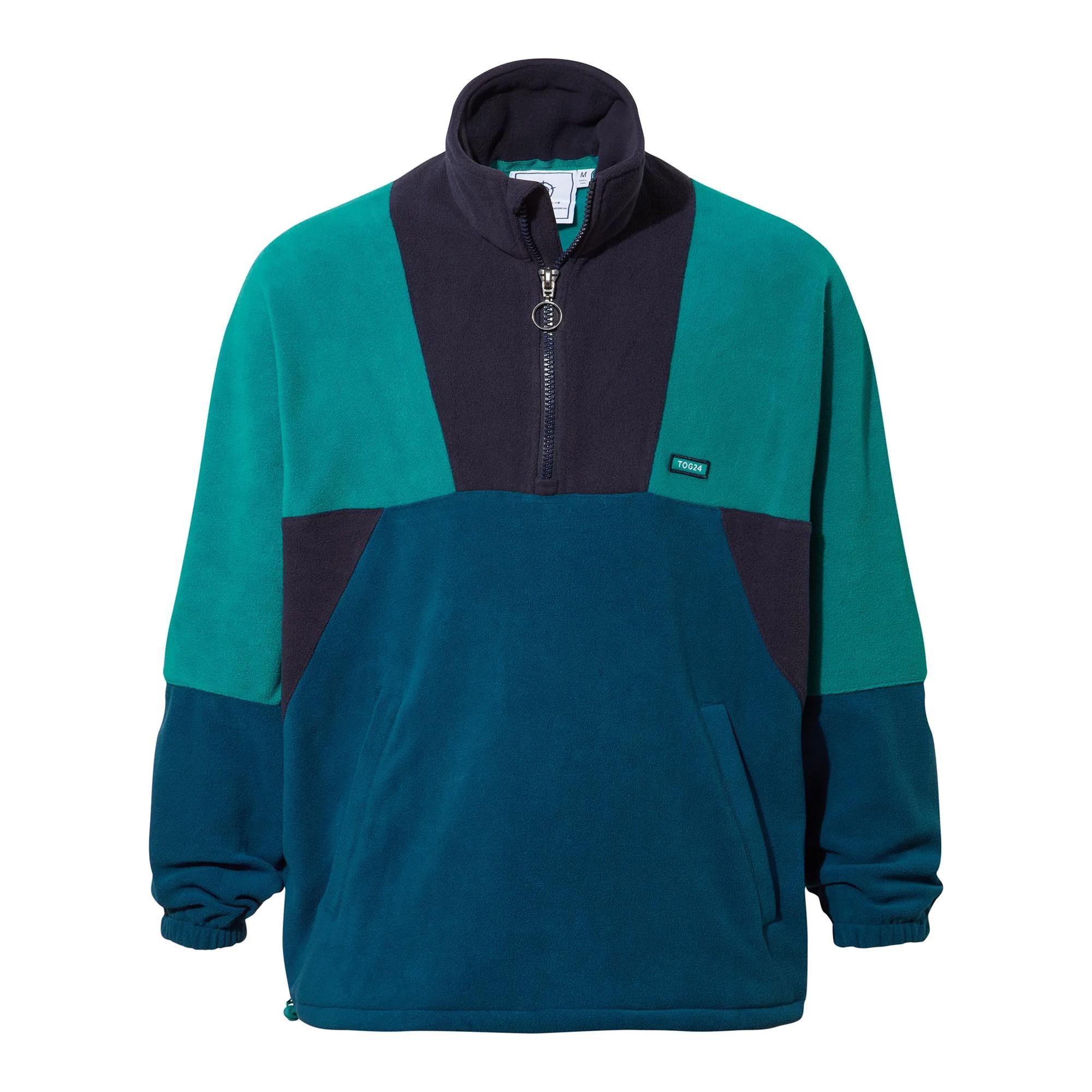 Diese Fleecejacke verfügt über einen Stehkragen und einen halben Reissverschluss, was eine bequeme und vielseitige Schichtungsoption bietet. Das Design umfasst ein Farbblockmuster, das dem Kleidungsstück eine unverwechselbare Note verleiht.