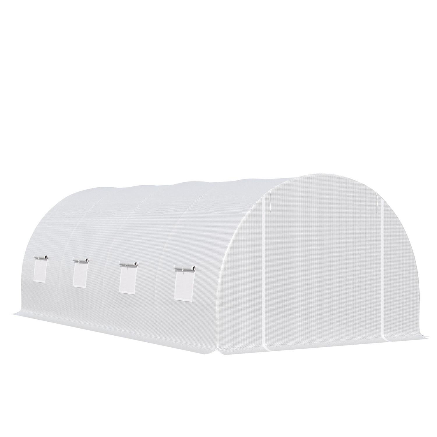 Dieses große Foliengewächshaus bietet Ihren Lieblingspflanzen nicht nur viel Platz zum Wachsen und Gedeihen, sondern schützt sie auch vor widrigem Wetter und Vögeln. Das Pflanzenhaus ist robust und mit einer frostsicheren, reißfesten und UV-beständigen Folie ausgestattet. Es kann bei Bedarf schnell auf- und abgebaut werden. Außerdem verfügt es über Fenster zur Regulierung des Luftaustauschs und einen stabilen Metallrahmen für hohe Stabilität.