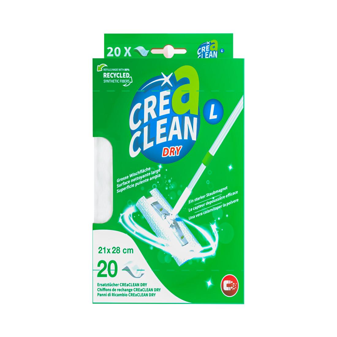 Die CREaCLEAN Dry L Ersatztücher sind eine praktische Lösung für die schnelle und effektive Reinigung von verschiedenen Oberflächen. Mit einem Packungsinhalt von 20 Tüchern ist man bestens ausgestattet, um die Böden, Möbel, Arbeitsflächen und andere Gegenstände sauber zu halten., , Die Tücher bestehen aus hochwertigem, fusselfreiem Material und sind besonders strapazierfähig. Sie eignen sich ideal für den Einsatz im Haushalt, im Büro oder in anderen Umgebungen, in denen eine schnelle und effektive Reinigung gefragt ist., , Die CREaCLEAN Dry L Ersatztücher sind einfach zu handhaben und können trocken oder leicht angefeuchtet verwendet werden. Sie entfernen mühelos Staub, Schmutz und Flecken und hinterlassen eine saubere, glänzende Oberfläche., , Das Produkt ist umweltfreundlich und nachhaltig produziert, was es zu einer verantwortungsvollen Wahl für umweltbewusste Verbraucher macht.