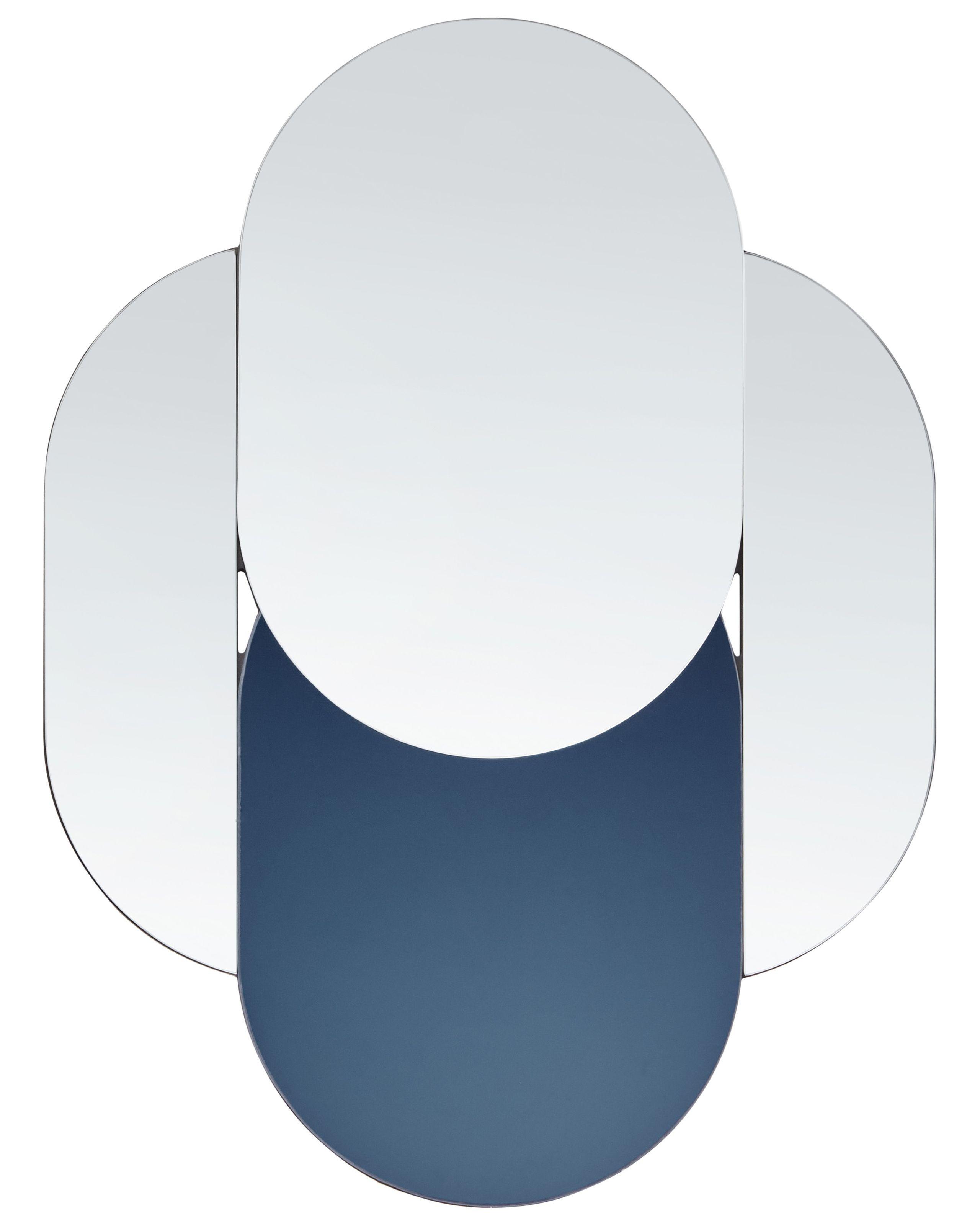 Moderner, origineller Hängespiegel mit blauem Dekoelement. Dieser stilvolle Spiegel punktet mit seinem einzigartigen Design, das sich aus drei unterschiedlichen Spiegelflächen und einem blauen Deko-Deatil zusammensetzt. In seinen Spiegelflächen überprüfen Sie bei jeder Gelegenheit Ihren Look, während der Wandspiegel auch ganz nebenbei Ihre Wände optisch verschönert. Auf seiner Rückseite befinden sich vier Aufhängehaken, so kann man den Deko-Spiegel mühelos an der Wand anbringen.