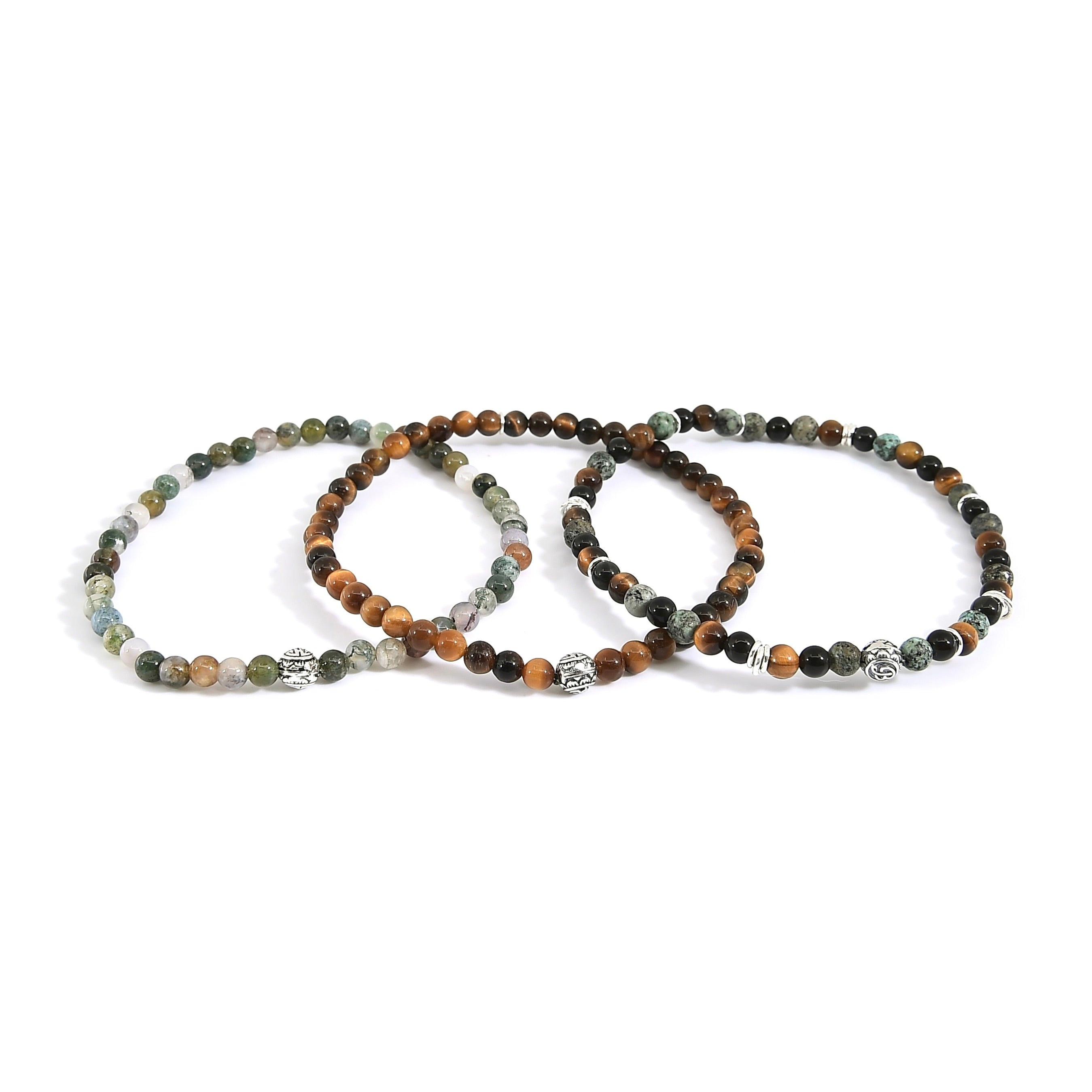 Kombinierbarer Stil Herren-Armband-Bundle aus echten Steinen & 925 Sterling Silber