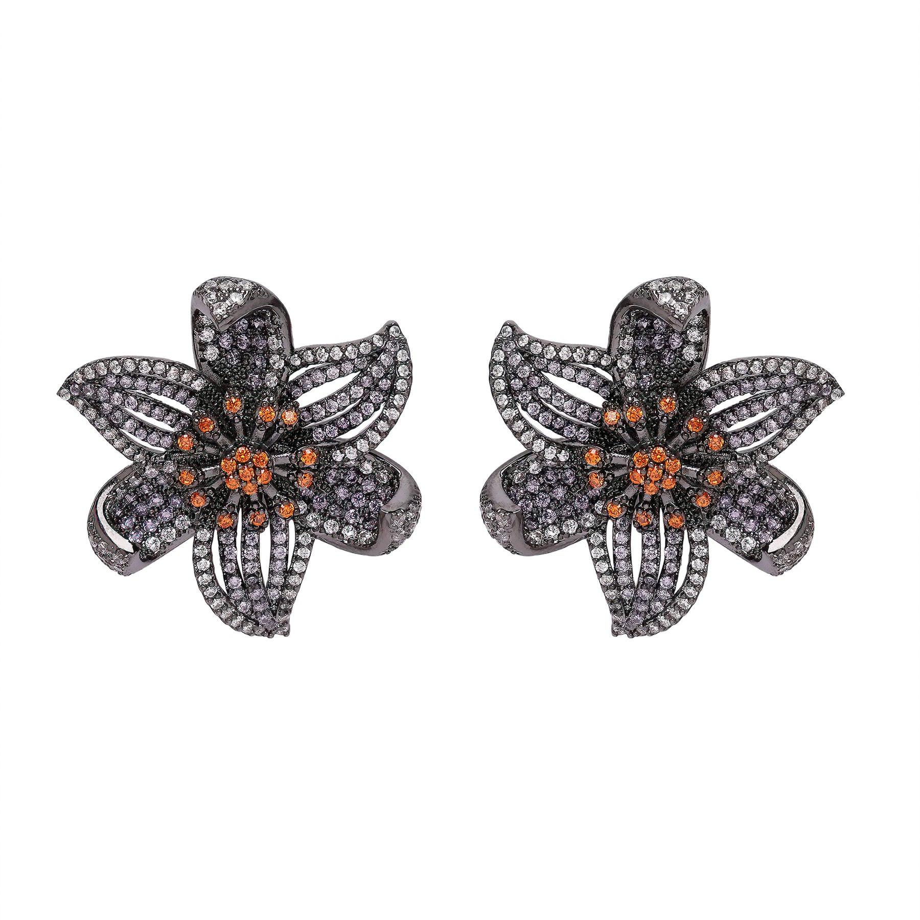 Die floralen Ohrstecker „Diva“ mit exquisiten violetten Zirkonia-Steinen vereinen Eleganz und Weiblichkeit auf bezaubernde Weise. Diese Ohrringe stammen aus der Diva-Kollektion. Sie sind leicht und bieten hohen Tragekomfort den ganzen Tag. Ob zu einem lässigen Outfit oder einem eleganten Kleid – diese floralen Ohrstecker verleihen jedem Look einen Hauch von Eleganz und Charme. Die violetten Zirkonia-Ohrstecker sind eine wunderschöne und vielseitige Ergänzung für jede Schmucksammlung. Größe: 2,8 cm x 3,0 cm | Beschichtung: Rhodium-plattiert | Verschluss: Stecker und Rückseite