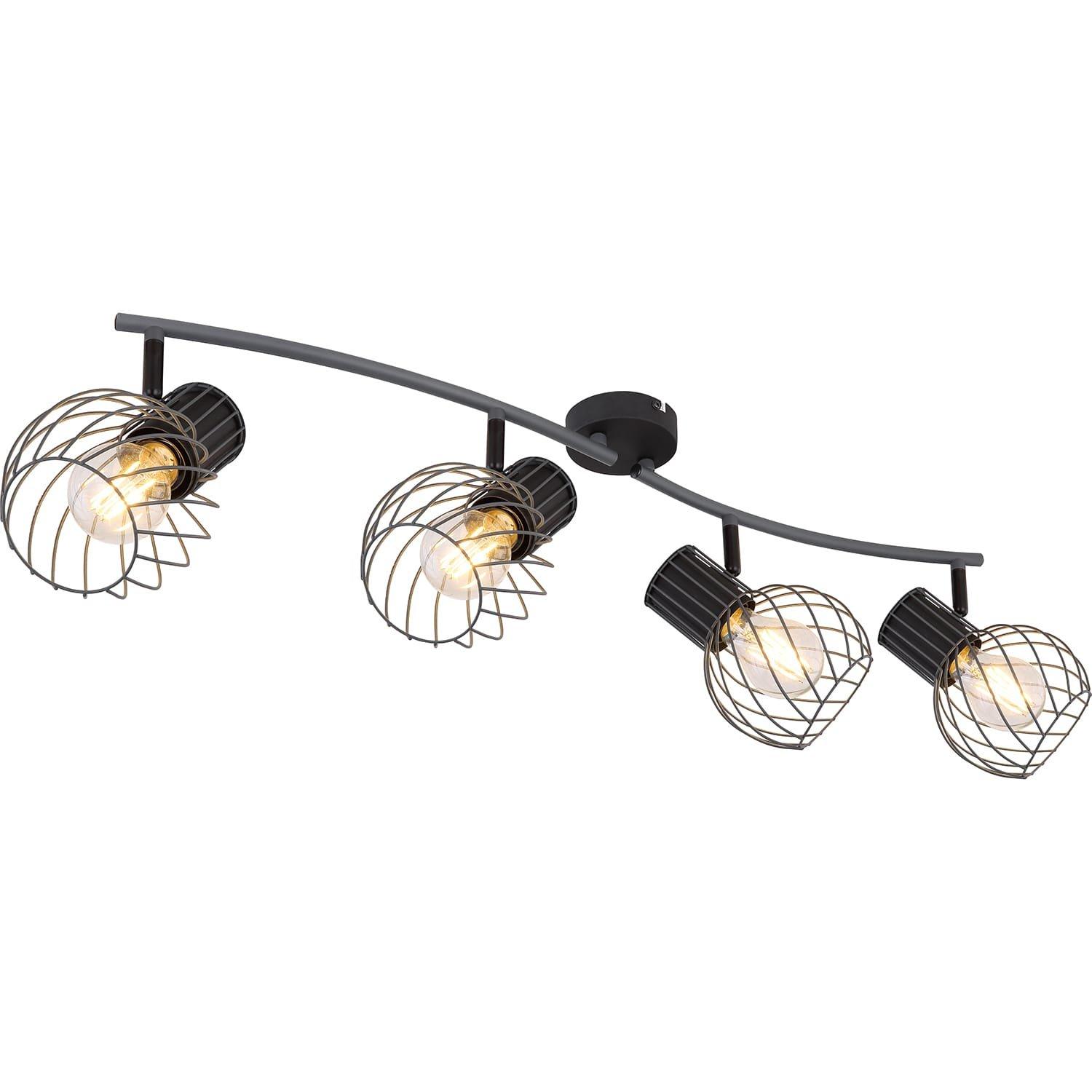 Der Deckenstrahler aus der Serie Beverone überzeugt mit seinem eleganten Design. Die vier beweglichen, an zwei Armen befestigten graphitfärbigen kugelförmigen Metallgeflecht-Schirme sollten alle Blicke auf sich ziehen. Die Spots sind mit jeweils einer E27 Fassung ausgestattet, die es Ihnen ermöglichen das für Sie passende Leuchtmittel (max. 40W) selbst auszuwählen und damit Lichtfarbe und Lichtstärke zu bestimmen. Aufgrund ihrer Stromersparnis und Langlebigkeit empfehlen wir LED-Leuchtmittel. Mit weiteren Strahlern aus dieser Serie können Sie das Bild in Ihren vier Wänden komplettieren.