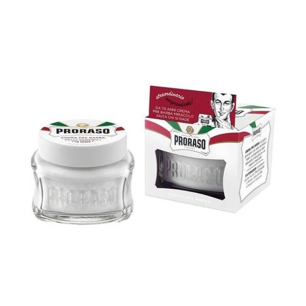Durch die Verwendung der Pre-Shave Creme werden die Barthaare aufgeweicht, sodass die Klinge geschmeidig über die Haut gleiten kann und Irritationen effektiv gemindert werden - für ein sanftes Rasurerlebnis. Die enthaltene Shea-Butter macht deine Haut geschmeidig weich und das Sandelholz-Aroma hinterlässt einen anregenden Duft. Wie bei allen Proraso-Produkten wird auch hier auf die Verwendung von Silikonen, Parabenen und Mineralölen verzichtet.Eine kleine Menge der Pre-Shave Creme wird auf das angefeuchtete Gesicht aufgetragen und einmassiert. Kurz einwirken lassen und den Bart mit Rasierschaum oder Rasierseife von Proraso umhüllen. Danach kann die Rasur losgehen!Aufgrund der feuchtigkeitsspendenen und kühlenden Eigenschaften kann dieses Produkt wahlweise auch als After-Shave verwendet werden.