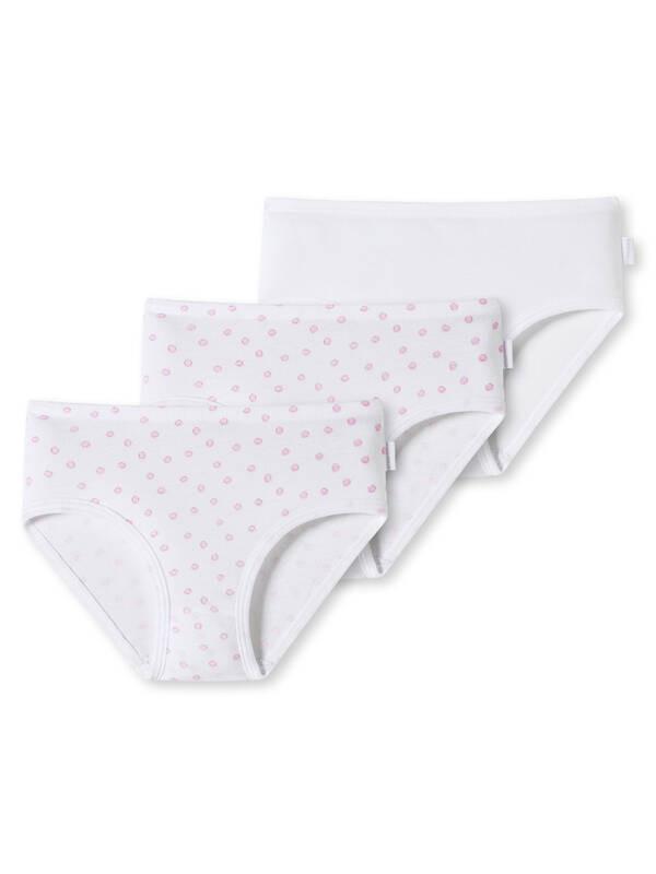Mädchen Hüftslips im praktischen Multipack, in weiss oder weiss mit rosafarbenen Pünktchen