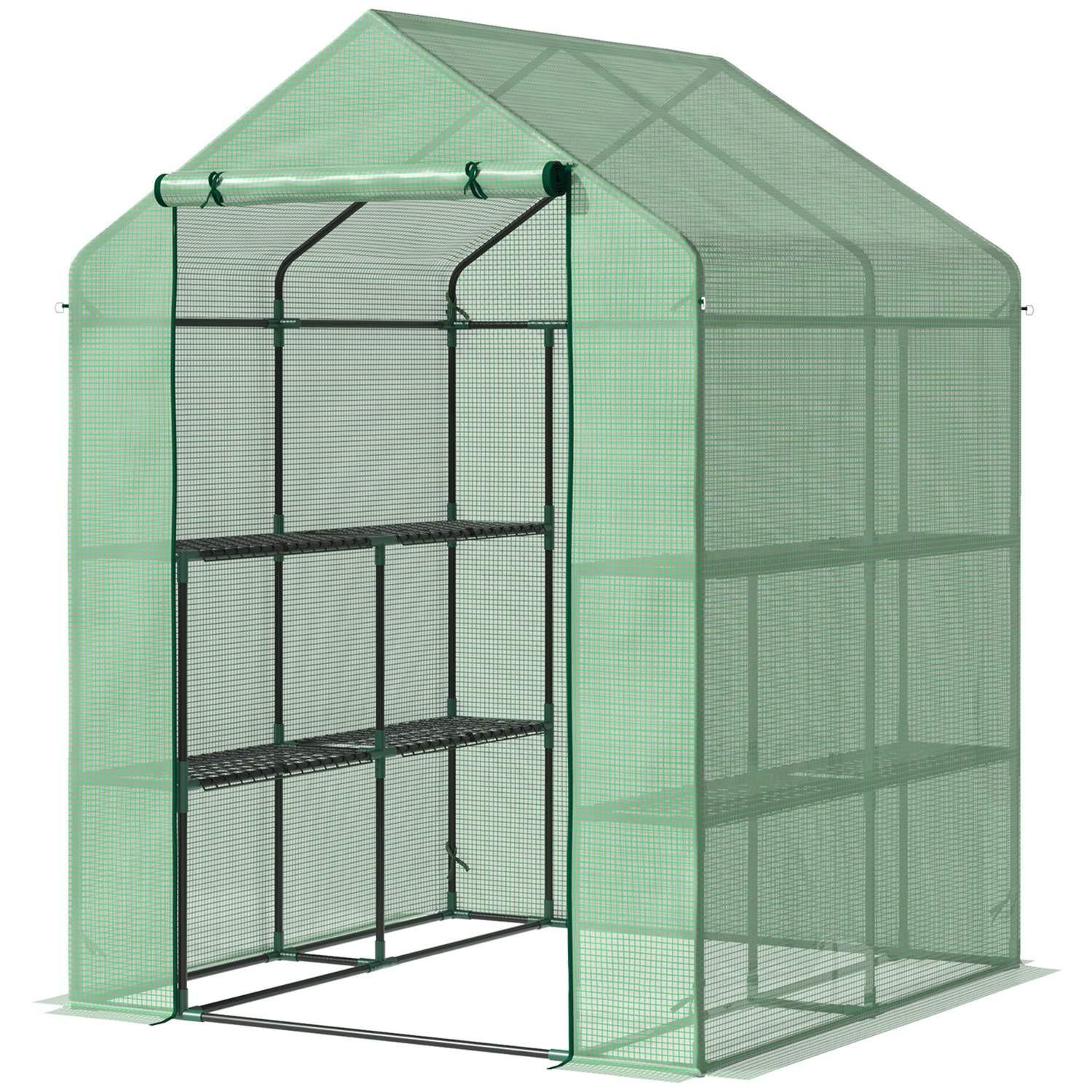 Northio, Foliengewächshaus Begehbares Treibhaus Mit 8 Regalebenen, Ideal Für Tomaten, Stahl & Pe-Kunststoff, Grün, Mit Tür