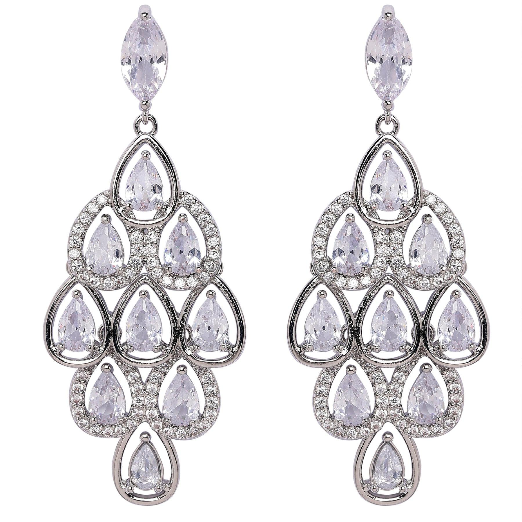 Diese eleganten Ohrhänger bestechen durch eine kaskadenartige Anordnung funkelnder Steine, die einen faszinierenden Wasserfall-Effekt erzeugen. Sie vereinen Eleganz und Glanz und verleihen jedem Outfit einen Hauch von Glamour. Größe: 2,2 cm x 5,5 cm | Beschichtung: Rhodiumplattiert | Verschluss: Stecker und Rückseite