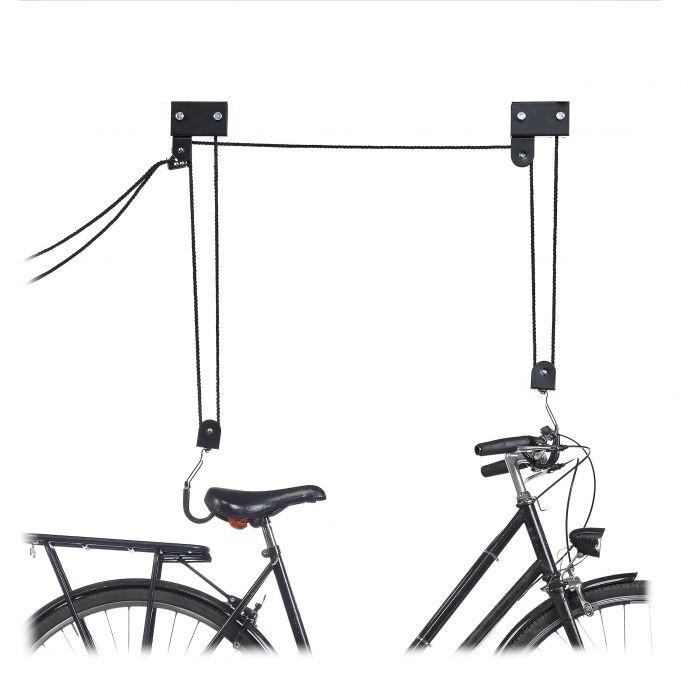 Der Fahrradständer zur Deckenmontage optimiert den Platz in der Garage, indem er Fahrräder und sperrige Gegenstände sicher über Kopf verstaut. Mit dem benutzerfreundlichen Seilzug lassen sich bis zu 57 kg mühelos heben, während die gummierten Haken die Gegenstände schützen.