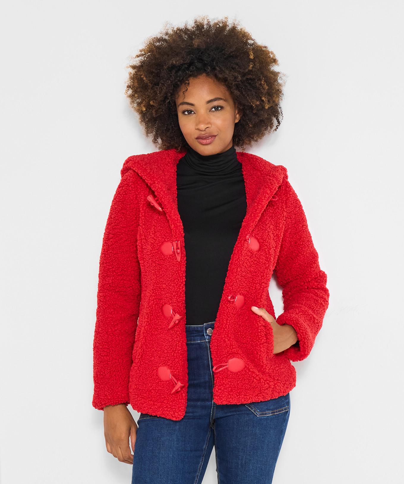 Diese Kapuzenjacke ist hübsch, praktisch und herrlich übergross, was sie unglaublich gemütlich macht. Sie verfügt über einen klassischen Knebelverschluss und eine Kapuze für zusätzliche Wärme und Stil, was sie zu einer vielseitigen Oberbekleidungsoption macht.