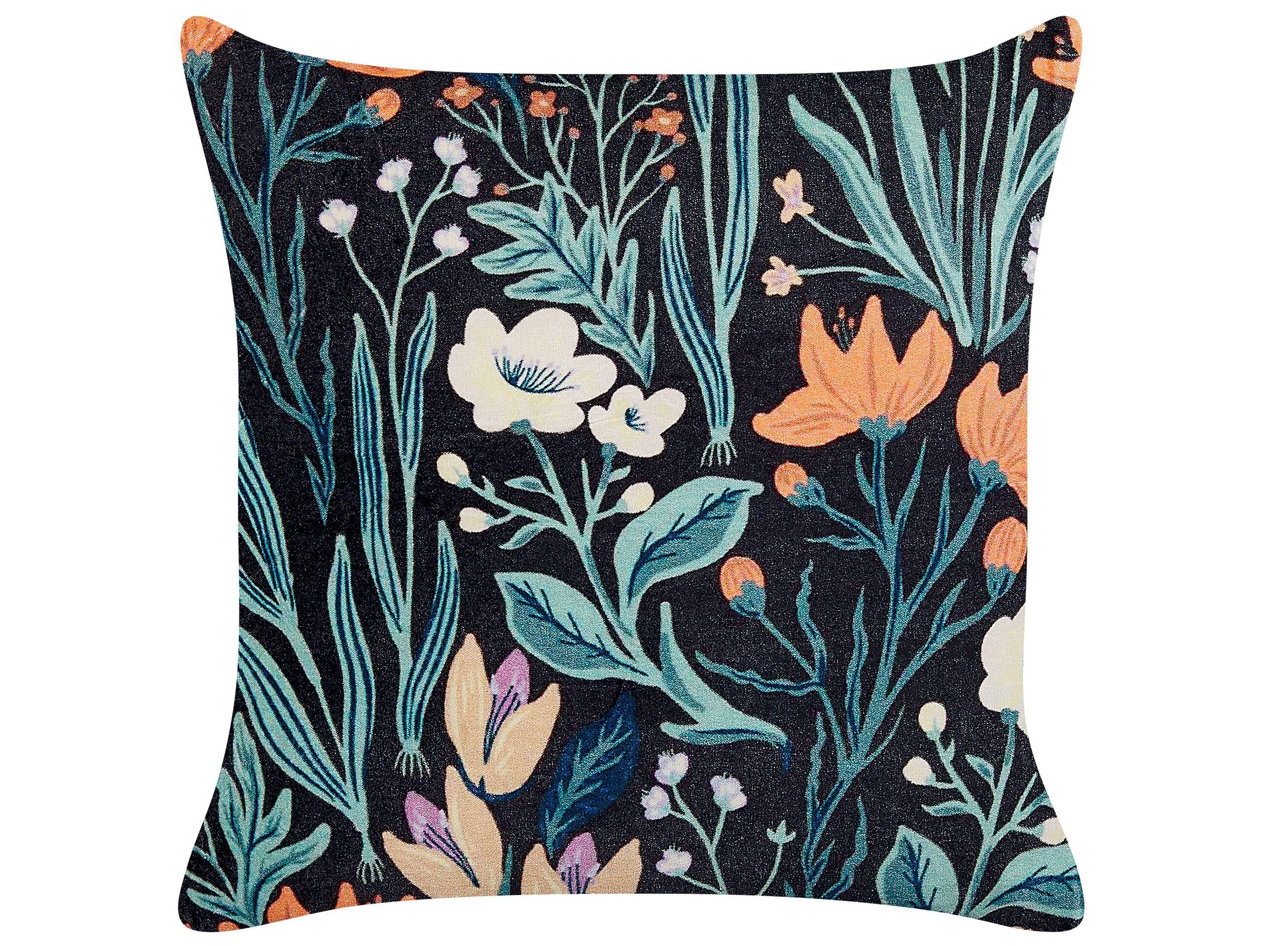 Quadratisches, schwarzes Zierkissen aus Baumwollsamt mit Blumenmotiv. Verschönern Sie Ihre Einrichtung mit einem farbenreichen Baumwollsamt-Kissen. Dieses Accessoire besticht durch sein florales Motiv und den schwarzen Hintergrund, der sich hervorragend in jedem modernen Arrangement machen wird. Der Kissenbezug besteht aus hochwertiger Baumwolle, wobei die Vorderseite mit einer weichen Samtstruktur veredelt sit. Zudem sit die Kissenhülle mit einem praktischen Reissverschluss versehen, so gestaltet sich ihre Pflege unfassbar leicht.