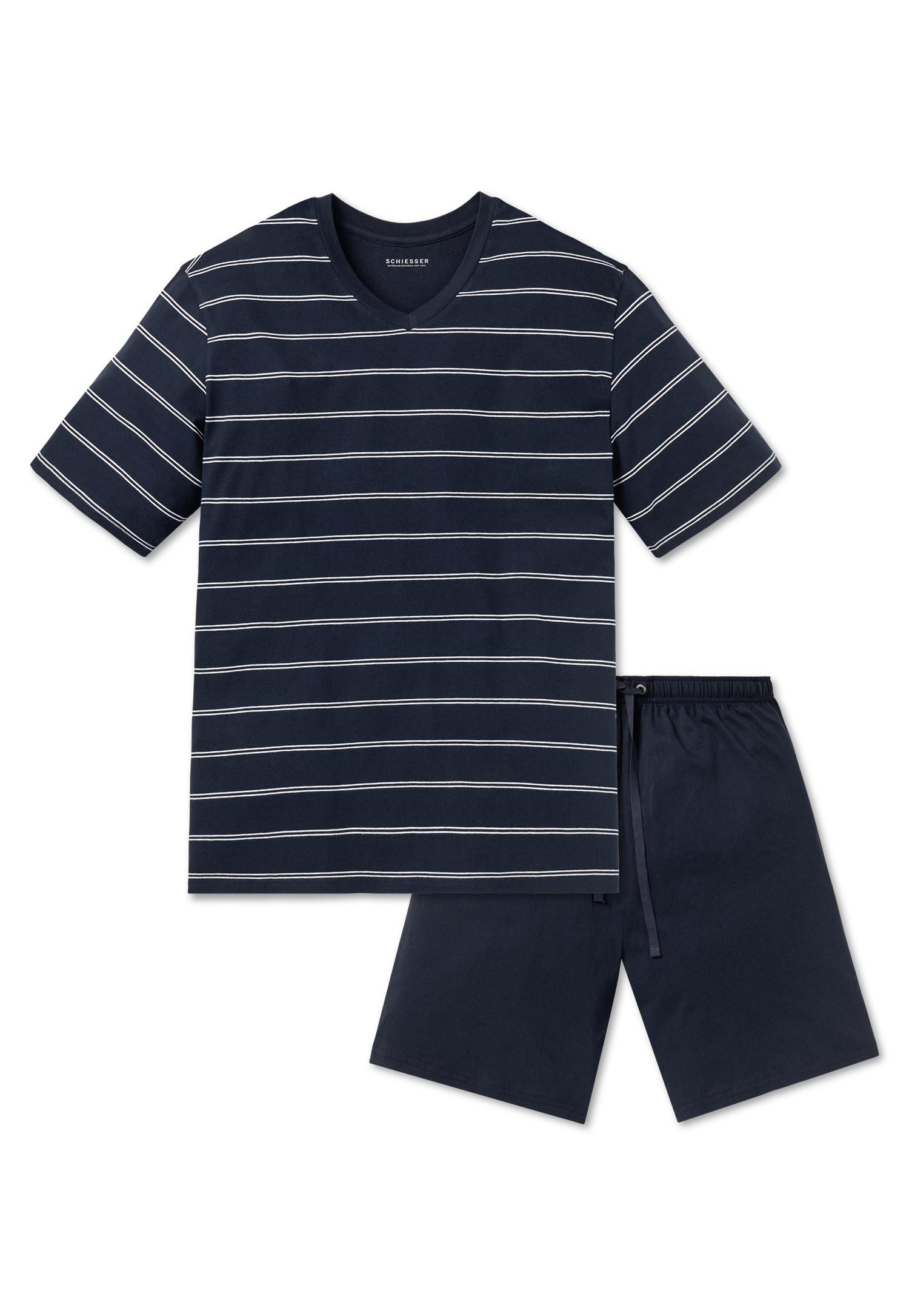Schiesser Comfort Fit Gestreiftes Kurzarm Pyjama Set