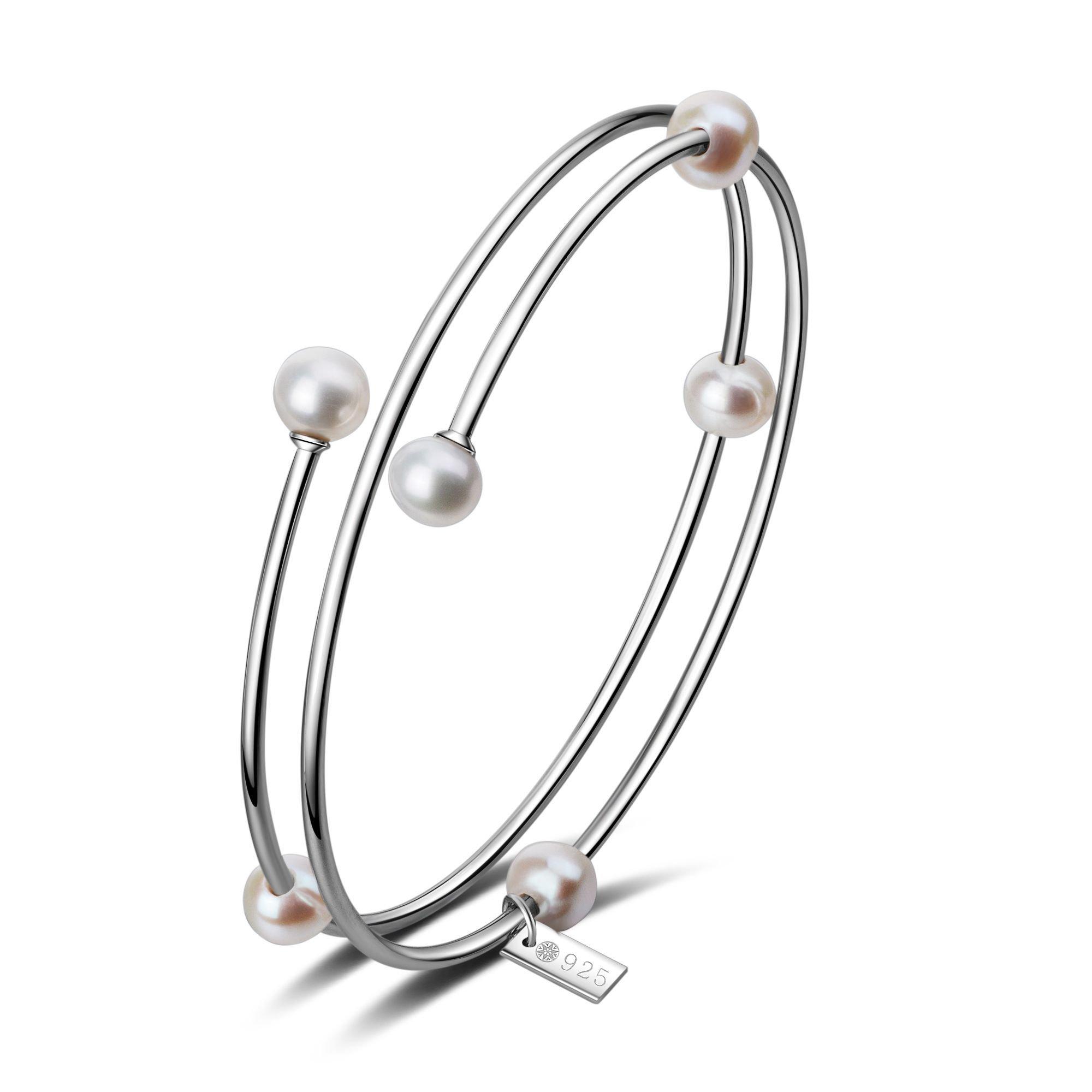 Eleganter Armreif aus 925 Sterling Silber mit 6 Süßwasserperlen