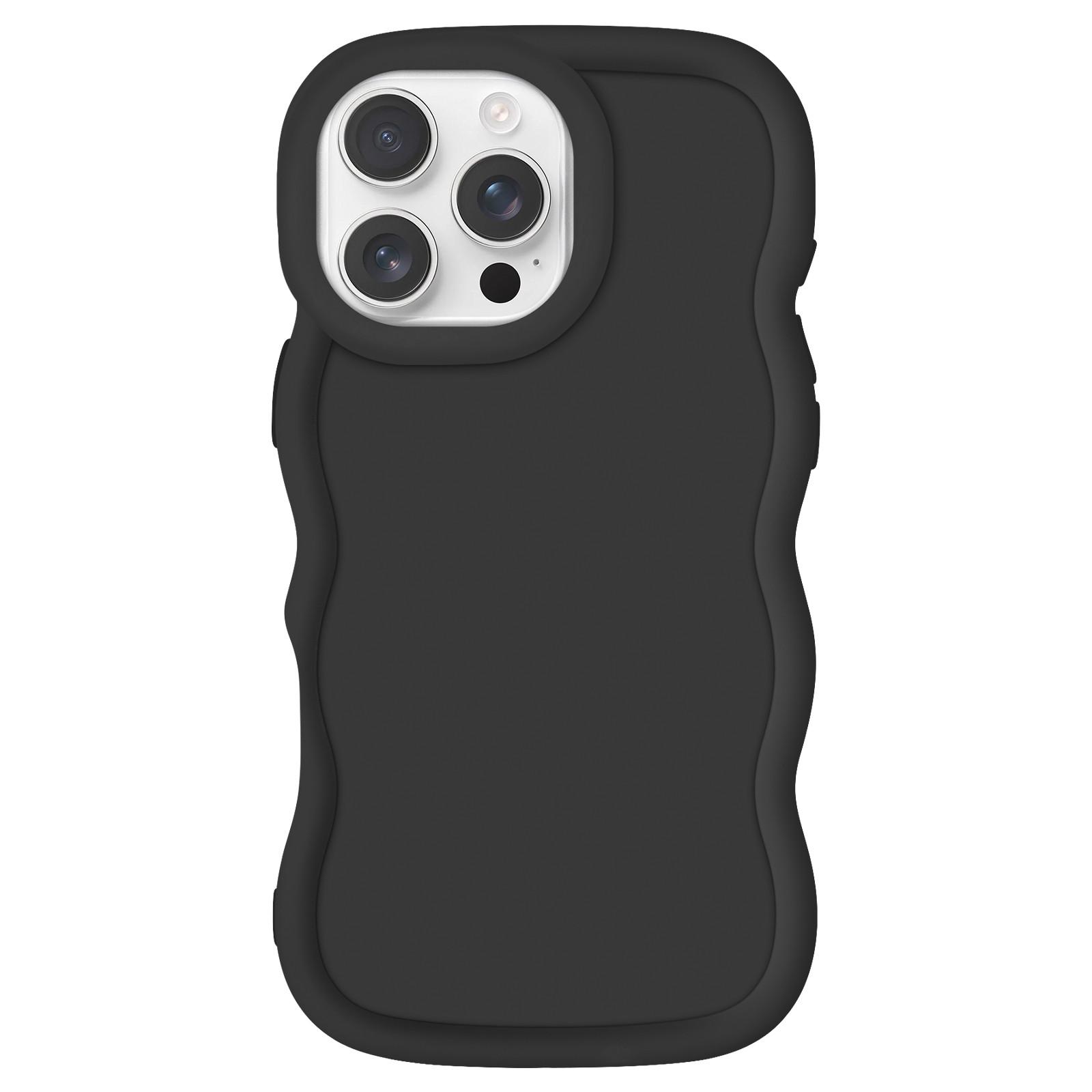Hülle für iPhone 16 Pro aus der Serie Candy, schwarz. Aus weichem Silikonmaterial. Optimaler Schutz bei Stürzen und Stößen. Verstärkte Ecken. Erhöhte Ränder. Elegantes mattes Finish. Einzigartiges modernes Wellen-Design. Zugängliche Funktionen.