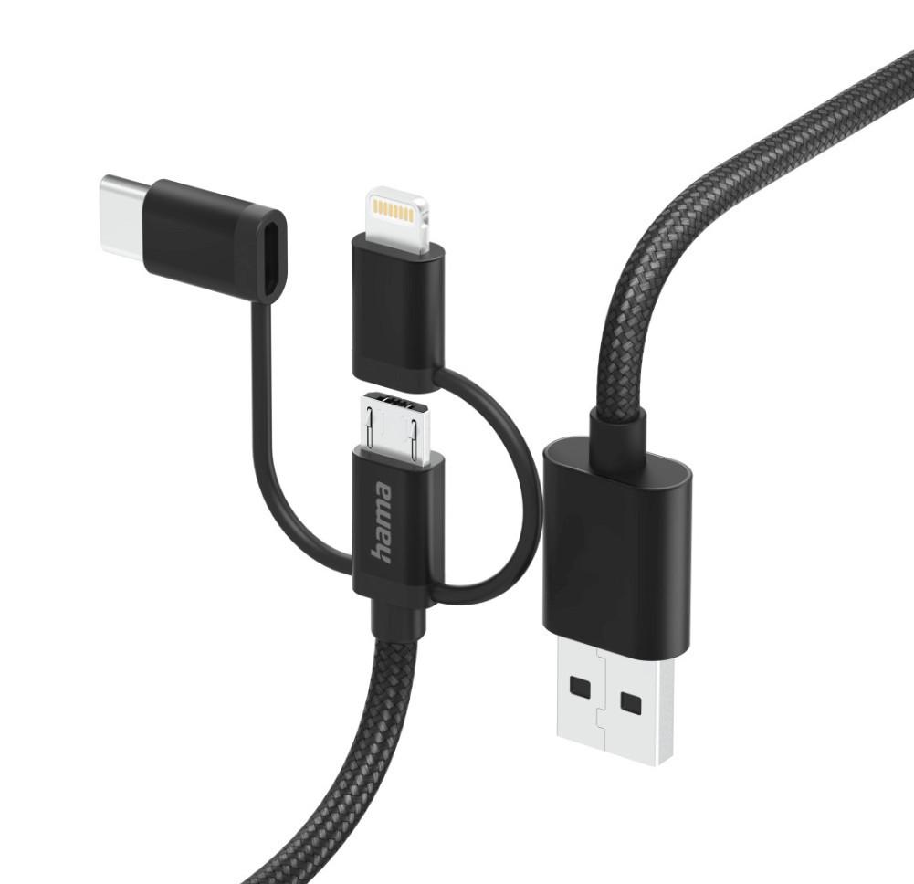 Hama 3in1 Multi-Ladekabel, USB-A / Micro-USB, USB-C und Lightning