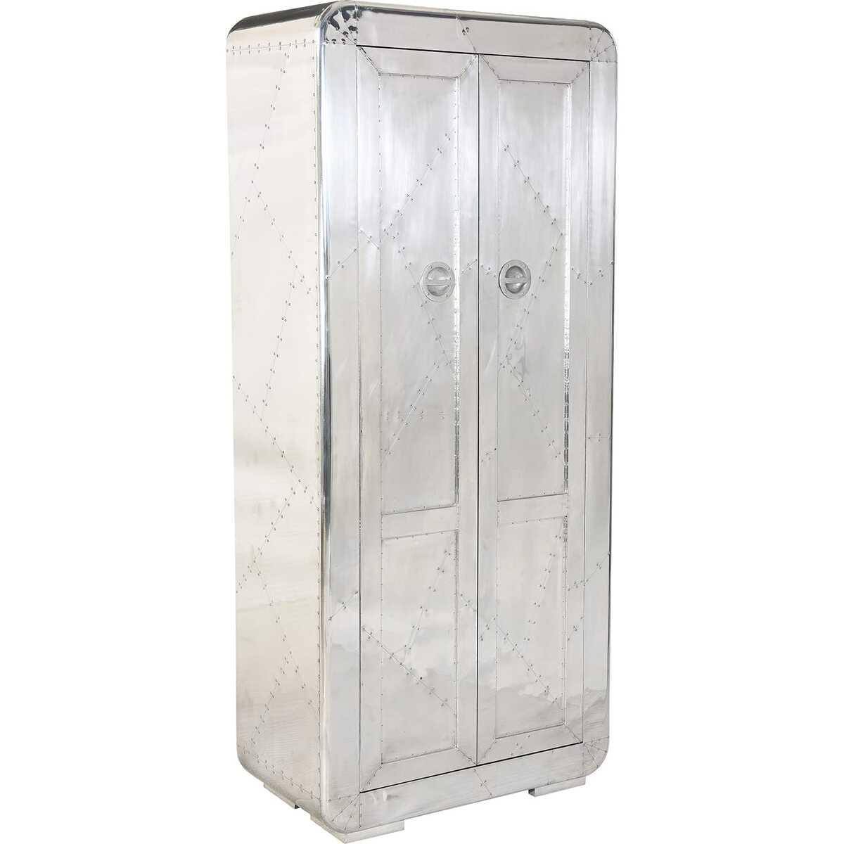 Schrank aus Mangoholz und MDF mit Alu beschlagen, mit Zierschrauben und mit 2 Türen, 3 Böden, einer davon fest, 1 Kleiderstange, silber, 80x40x180