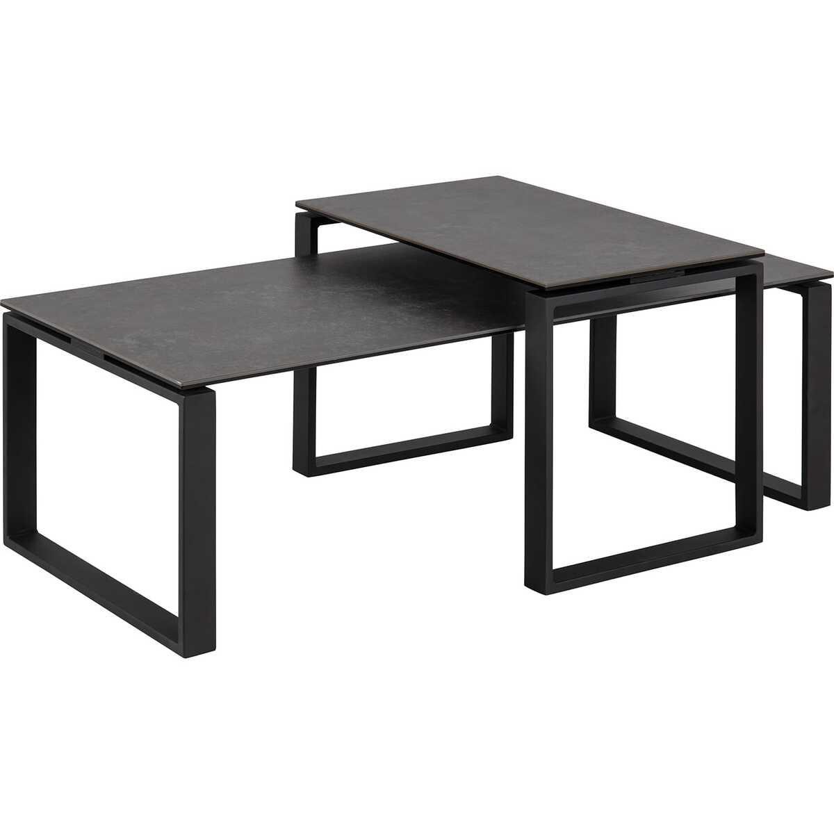 Couchtischsatz Catherine Glas/ Keramik Fairbanks Schwarz Gestell Metall pulverbeschich- tet rau Schwarz matt 115x69x45 cmFarbe Gestell/Beine: Matt SchwarzFarbe Tischplatte: Fairbanks SchwarzTischrandform: gerade Freie Esstischhöhe cm: 43.6Bodenschutz: Filzgleiter