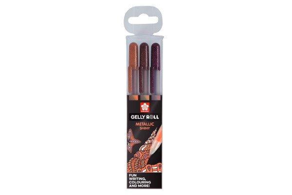 GELLY ROLL - Gelschreiber "Metallic" Der Sakura Gelly Roll Pen ist dank der einzigartigen Pigmenttinten-Formel auf Wasserbasis der weltbeste Gelstift. Die einzigartige Geltinten-Technologie sorgt für leichtes Schreiben ohne Druckausübung, darüber hinaus für gleichmäßige, definierte Linien während des Schreibens und Zeichnens. Der Gelly Roll ist nicht nur ein Schreibgerät, sondern eignet sich auch hervorragend für verschiedene kreative Anwendungen. Sakura hat die Technologie des konstanten Tintenflusses des Gelly Roll bereits 1984 erfunden. metallisch-glänzender Effekt Geeignet auf weissen UND schwarzem Papier wasserbasierte, pigmentierte und deckende Tinte gleichmässiger Tintenfluss geruchlos