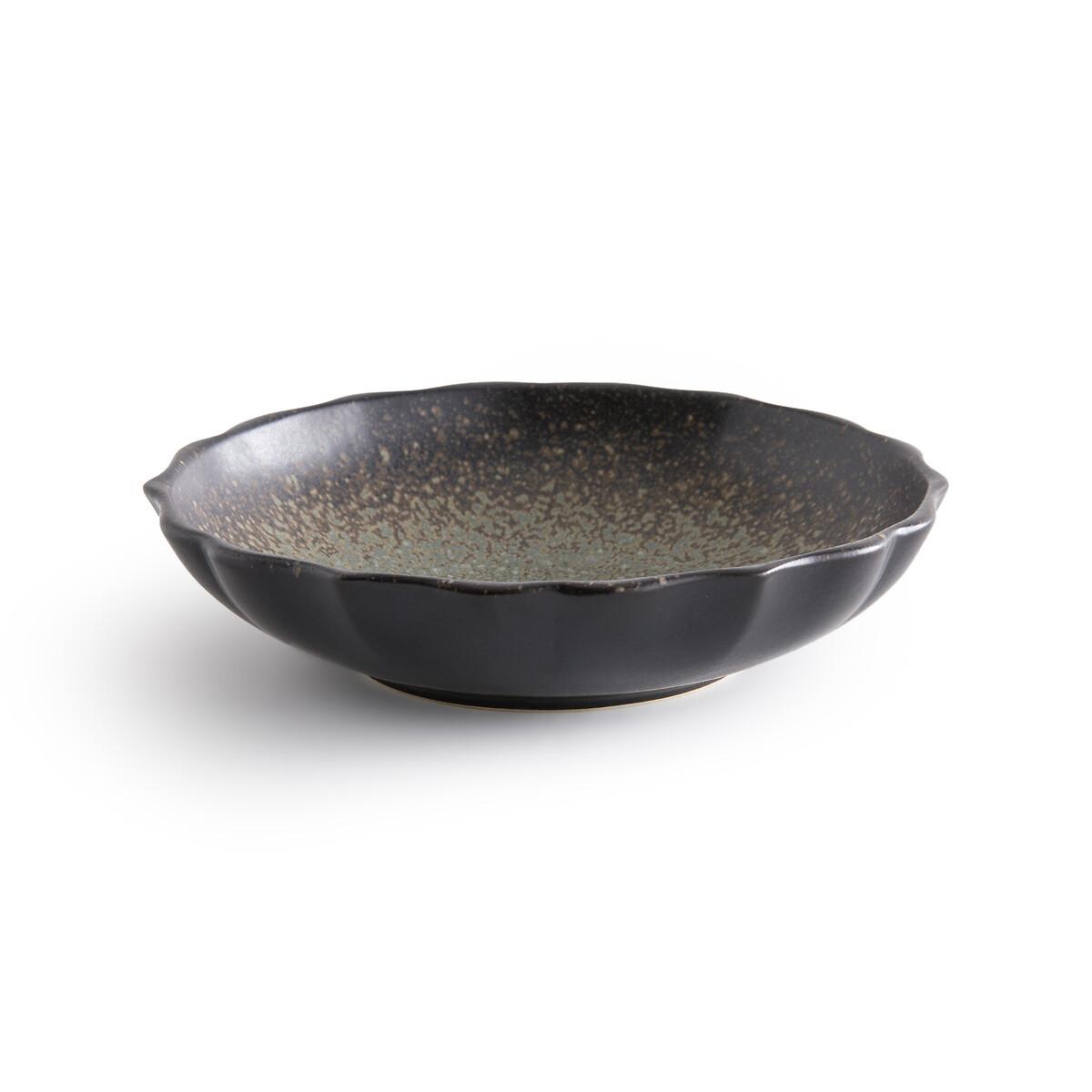 Klarheit der Linien und Tiefe der Farbe. Mit ihrem gebogten Rand und dem zarten Sprenkelmuster strahlen diese Teller eine sachlich-elegante Ästhetik aus. Handarbeit aus Portugal, jedes Stück ist ein Unikat.