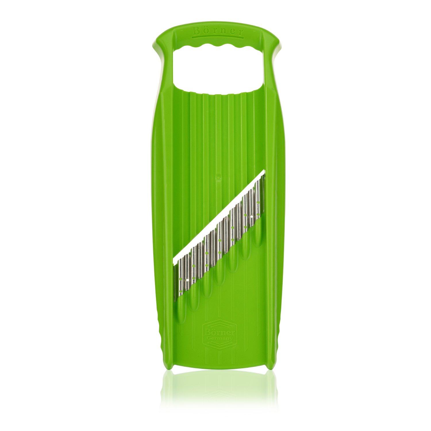 Ohne Fruchthalter 2 verschiedene Schnittmuster möglich Schnittgut Welle 15mm Schnittgut Waffel 12mm Ergonomischem Griff BPA-freier Kunststoff Frei von Weichmachern und Schadstoffen Mikrofein-geschliffene Edelstahlmesser