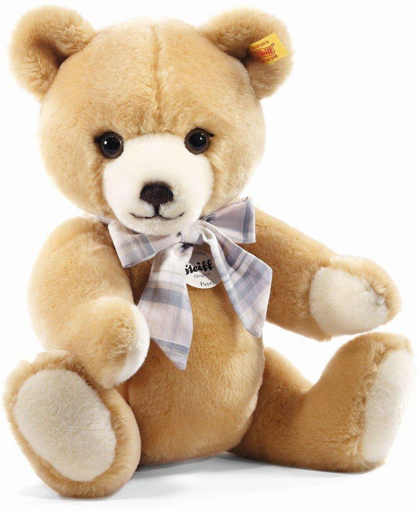 Der nette Petsy Teddybär hat schönes blondes Fell und ist ein toller Spielkamerad. Petsy ist aus streichelweichem Webpelz und hat eine Größe von 28 cm. Der Teddybär trägt eine hübsche Schleife um den Hals und freut sich schon auf seine neuen Freunde. Die Schleife ist nicht abnehmbar..