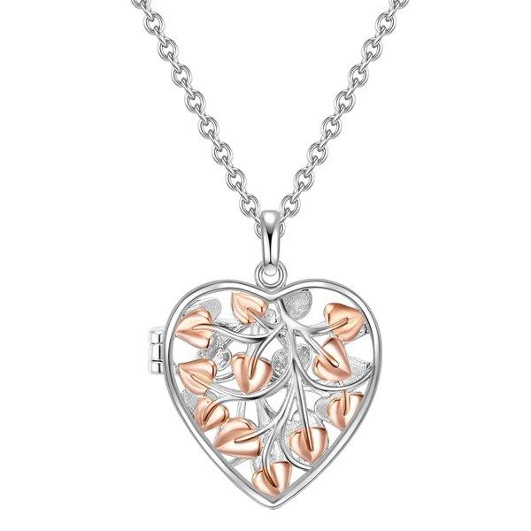 Als würden Sie einen Teil der Laubkrone eines magischen Silberbaumes aus dem Feenland um den Hals tragen: Diesen Eindruck vermittelt diese märchenhafte Medaillon-Halskette aus der Designschmiede von Rafaela Donata. Für dieses bezaubernde Ensemble wurde reinstes 925er Sterlingsilber ausgewählt, welches beim grazilen Herz-Anhänger mit einer partiellen Rosévergoldung für warm schimmernde Effekte sorgt. Besagtes Schmuckstück begeistert dank seiner Cut-outs und fungiert als edler Schmuckkäfig, der den Blick auf einen der beiden Glücksbringer freigibt, welche das Schmuck-Set komplett machen. Das Medaillon wurde übrigens so konzipiert, dass es sich mühelos öffnen lässt und dabei festen Halt verspricht, um das glänzende Herz oder den Engelsflügel auf Ihrem Dekolleté sicher zu inszenieren.