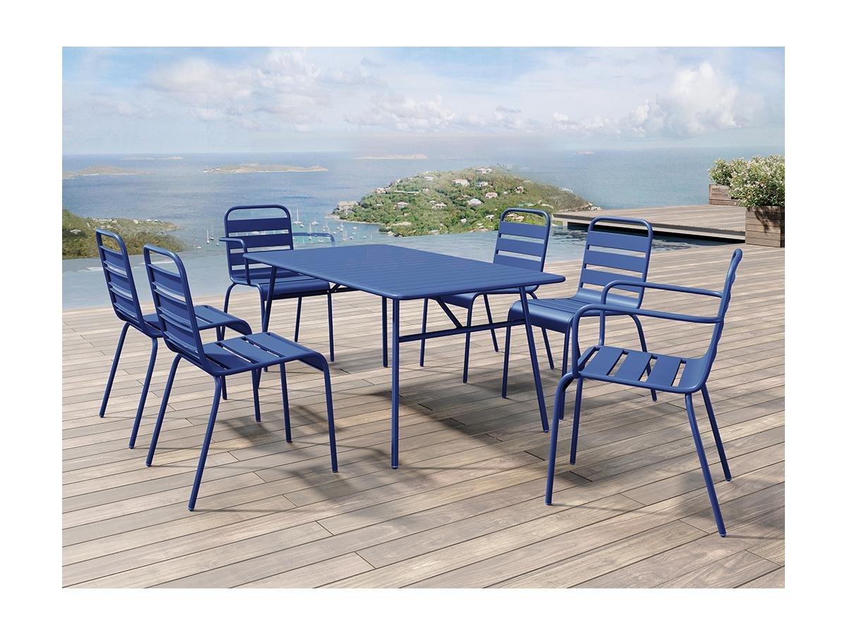 Vente-unique, Garten-Essgruppe: Tisch D. 160 cm + 2 Sessel + 4 Stühle - Metall - Dunkelblau - MIRMANDE von MYLIA