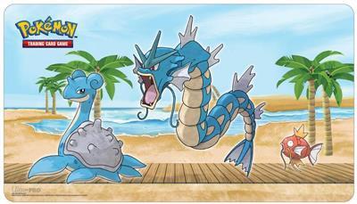 Surfs up with Pokémon Seaside Series Accessories! Ultra PROs Playmats for Pokémon feature vibrant, full-color artwork. Made with a soft fabric top to reduce damage to cards during play and a non-slip rubber backing to keep the playmat from shifting during use, playmats enhance the gameplay experience. With dimensions of approximately 24 in. x 13.5 in., a playmat also makes an excellent oversize mousepad for home or office.