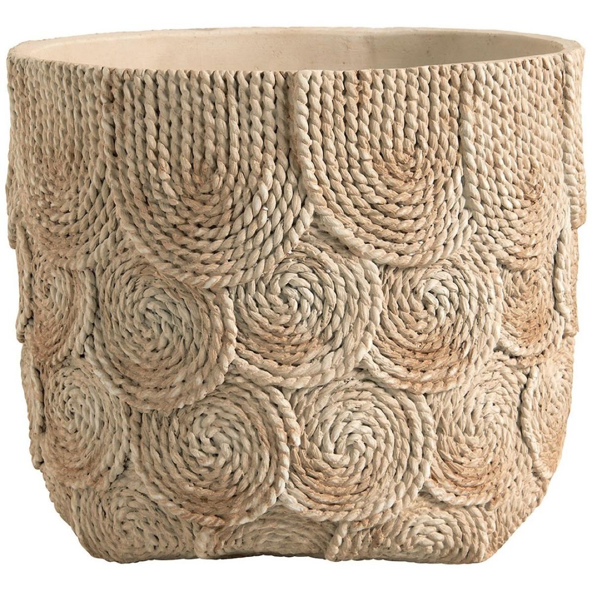 Der Übertopf Osa ist ein dekoratives Element, das Tradition und Moderne vereint. Durch den Überformungsprozess auf Weide erhält er eine einzigartige, strukturierte Optik. Hergestellt aus Zement mit einer sanften Creme-Finish, fängt dieser Übertopf die natürliche Essenz der Weide ein, während er die Robustheit und Eleganz von Zement bietet. Sein schlichtes Design und seine organischen Linien machen ihn zu einem vielseitigen Accessoire, ideal, um Ihre Zimmerpflanzen in Szene zu setzen und gleichzeitig einen handwerklichen Akzent in Ihre Dekoration zu bringen.Platzieren Sie den Übertopf Osa in einem Wohnzimmer, Schlafzimmer oder Büro, um Ihrem Raum einen Hauch von natürlichem und beruhigendem Charme zu verleihen. Seine texturierte Wirkung, die an Weide erinnert, und das Creme-Finish harmonieren perfekt mit verschiedenen Stilen, sei es zeitgenössisch, Boho oder skandinavisch. Kombinieren Sie ihn mit anderen Osa-Stücken, um eine stimmige und warme Atmosphäre zu schaffen und mit Materialien und Texturen zu spielen.Material: ZementAbmessungen: Breite 31,5 x Tiefe 31,5 x Höhe 26,5 cmMit durchbohrtem Boden, für den Aussenbereich konzipiert
