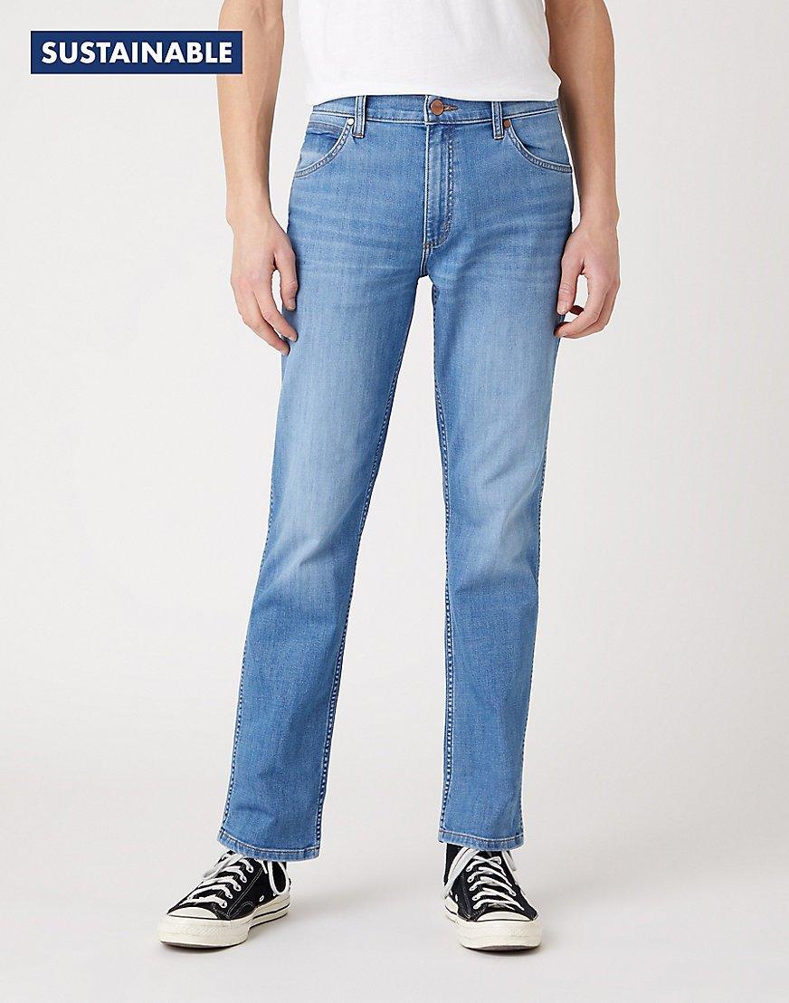Unsere klassische Greensboro Jeans wurde in einem leichten Stoff neu aufgelegt. Unsere Greensboro Jeans aus leichtem Stoff ist leicht und bequem zu tragen und wird dich mühelos in die wärmeren Monate bringen. Hergestellt aus recyceltem Polyester und Better Cotton Initiative (BCI) Baumwolle. Klassischer gerader Beinschnitt. Charakteristische Wrangler 'W'-Nähte.