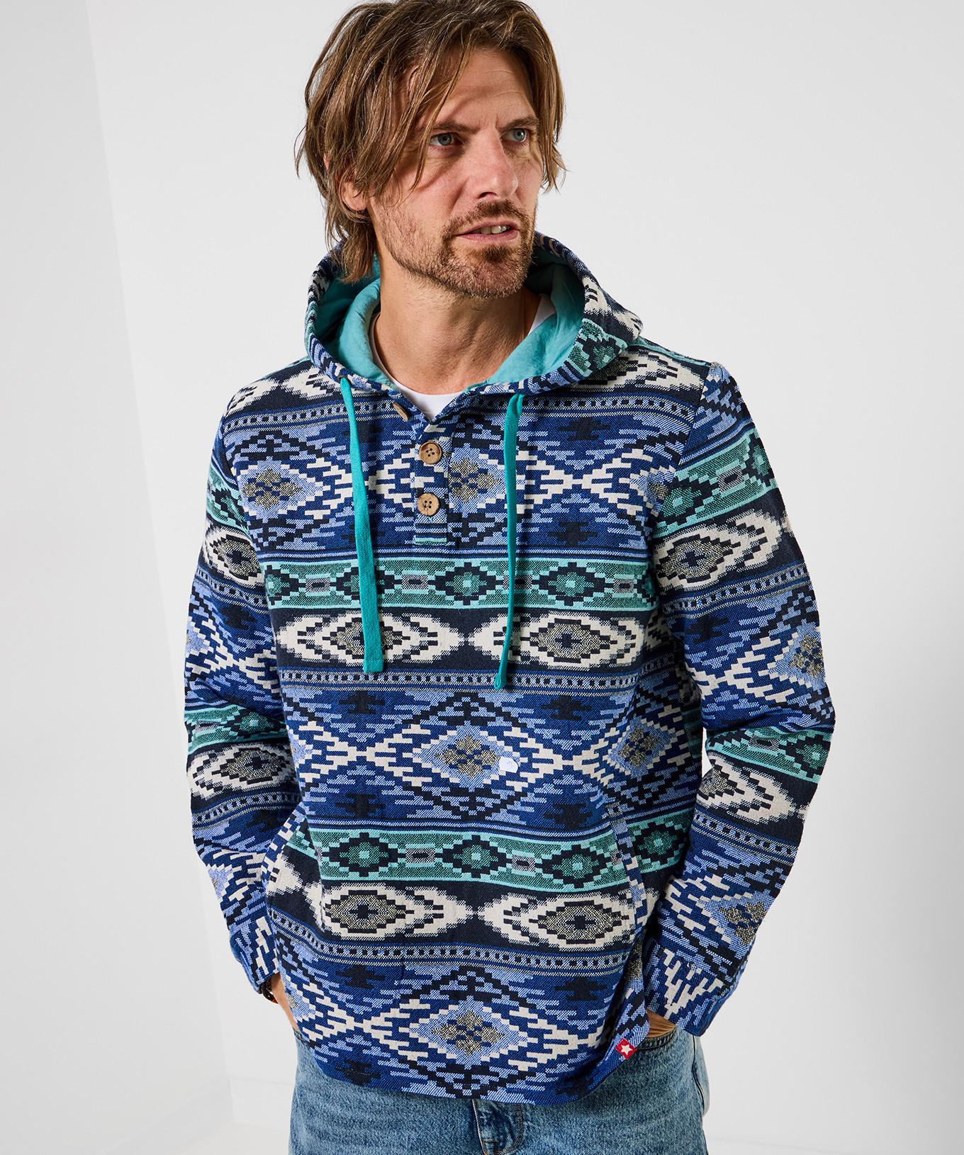 Der leichte Jacquardstoff macht diesen Kapuzenpullover zu einer angenehmen Wahl für milde Abende.