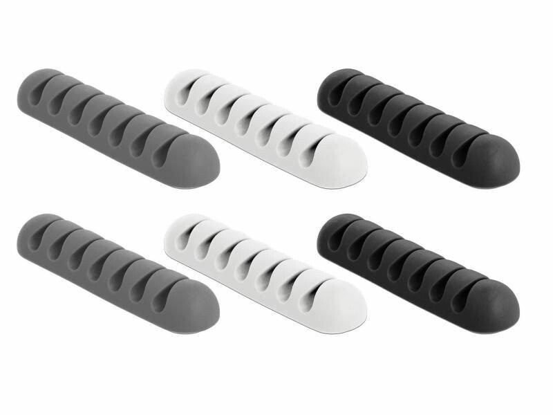 Produkttyp: Kabel-Clip, Ausstattung Kabelmanagement: Set, Selbstklebend, Verpackungseinheit: 6 Stück, Material: TPR, Detailfarbe: Grau, Schwarz, WeissSelbstklebend, viele EinsatzmöglichkeitenFarbe: weiss, grau, schwarz7x KabeldurchführungenFür einen Kabeldurchmesser bis 4 mm