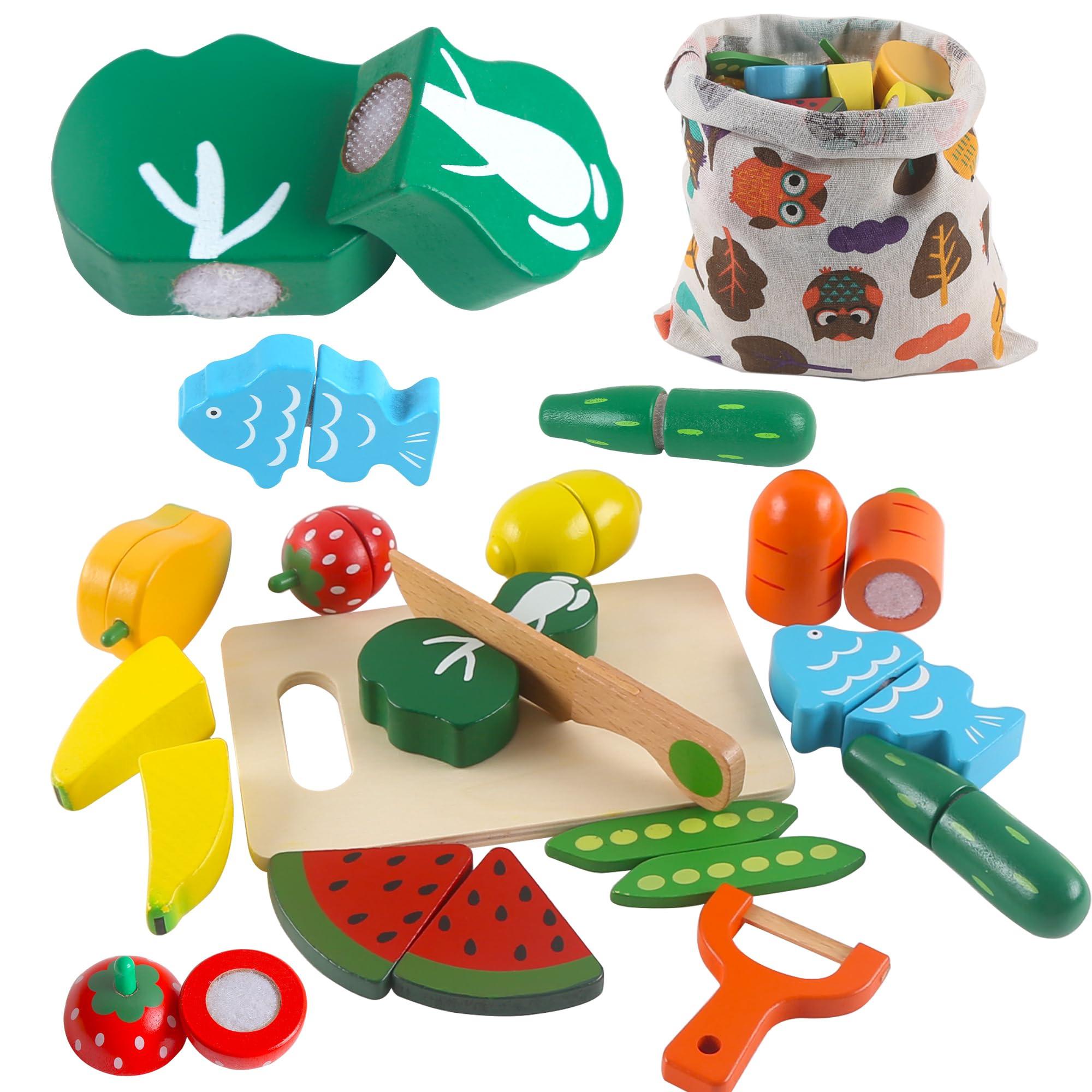 Activity-board Kinderküche Zubehör Spielzeug, Holz schneiden Obst und Gemüse hölzerne Spielzeug, pädagogisches Spielzeug für das Kochen Simulation und Farbe Anerkennung