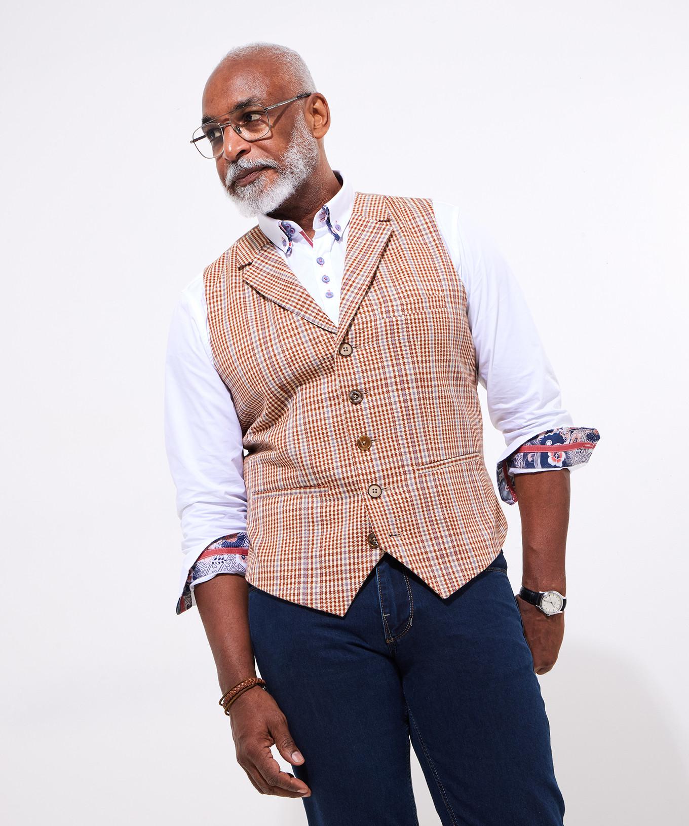 Diese karierte Sommerweste ist eine stilvolle Ergänzung für jede Garderobe. Sie zeichnet sich durch ein klassisches Design mit Knopfverschluss und eine massgeschneiderte reguläre Passform aus, wodurch sie für verschiedene Anlässe geeignet ist.