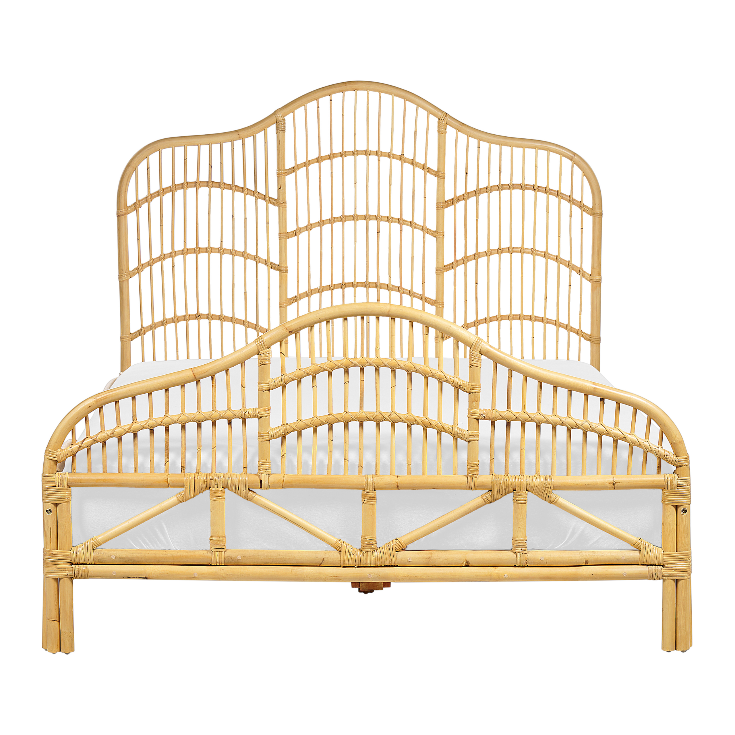 Robustes Boho-Rattanbett mit komfortablem Lattenrost, hohem Kopfteil und Fussteil. Dank dieses Bettrahmens und des Massivholz-Lattenrostes zaubern Sie einen rustikalen, dennoch gemütlichen Boho-Look in Ihr Schlafzimmer. Das Bettgestell ist mit Liebe zum Detail von Hand aus hochwertigem Rattan geflochten. So punktet das Bett nicht nur mit seiner Einzigartigkeit und seinem handwerklichen Charme, sondern auch mit einer natürlichen Ausstrahlung. Das Ehebett verfügt über ein hohes Kopf- und Fussteil sowie über hohe Seitenteile, die zusammen Ihre Matratze an ihrem Platz halten und Ihnen anhaltenden Komfort versprechen. Der formschöne Seitenrand erleichtert auch das Einsteigen in das Bett. Lehnen Sie sich an der Rückenwand an und vertiefen Sie sich in Ihr Buch oder legen Sie sich einfach hin und geniessen Sie traumhafte Nächte auf der breiten Liegefläche.