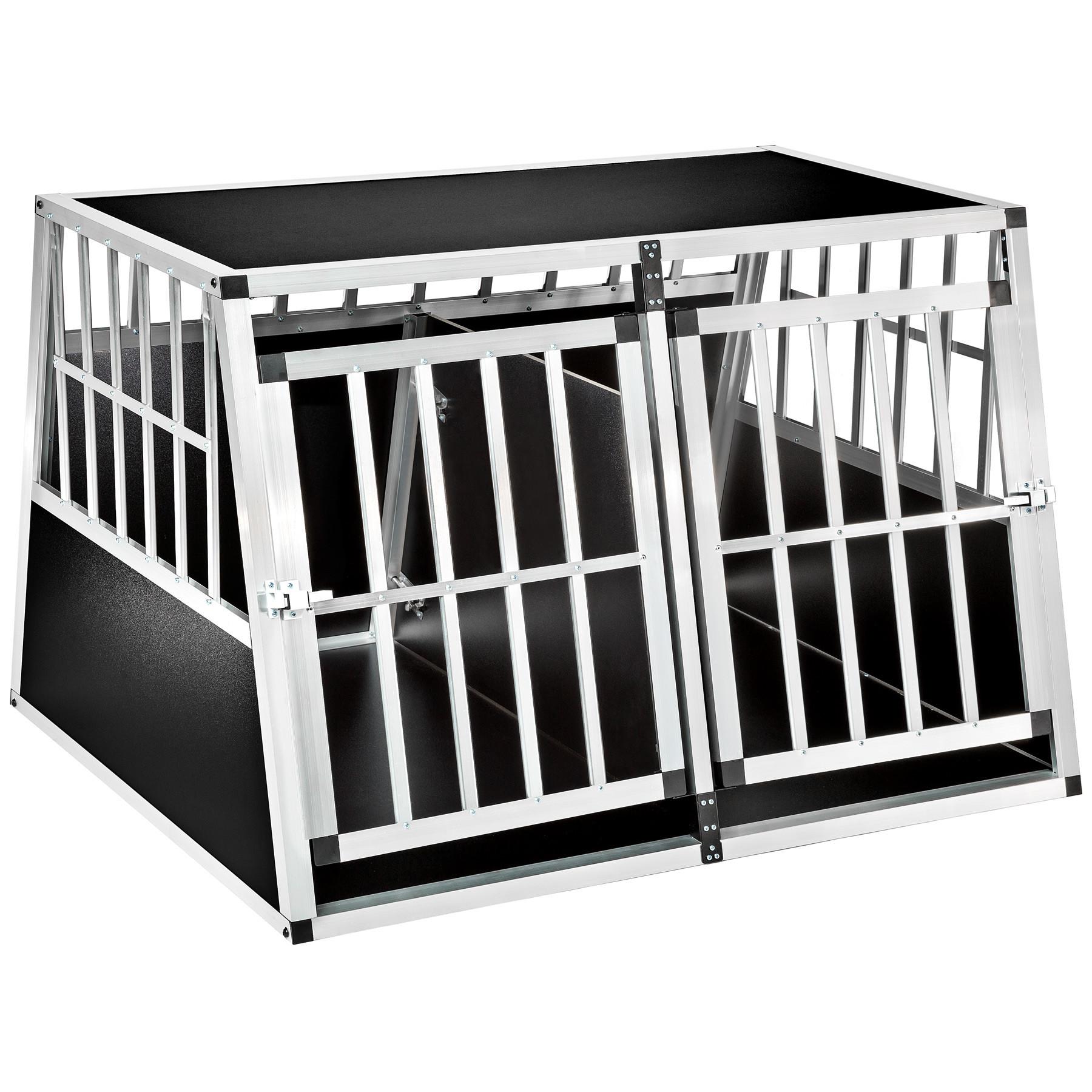 Tectake Hundetransportbox doppel mit schräger Rückwand aus Aluminium, robust und pflegeleicht