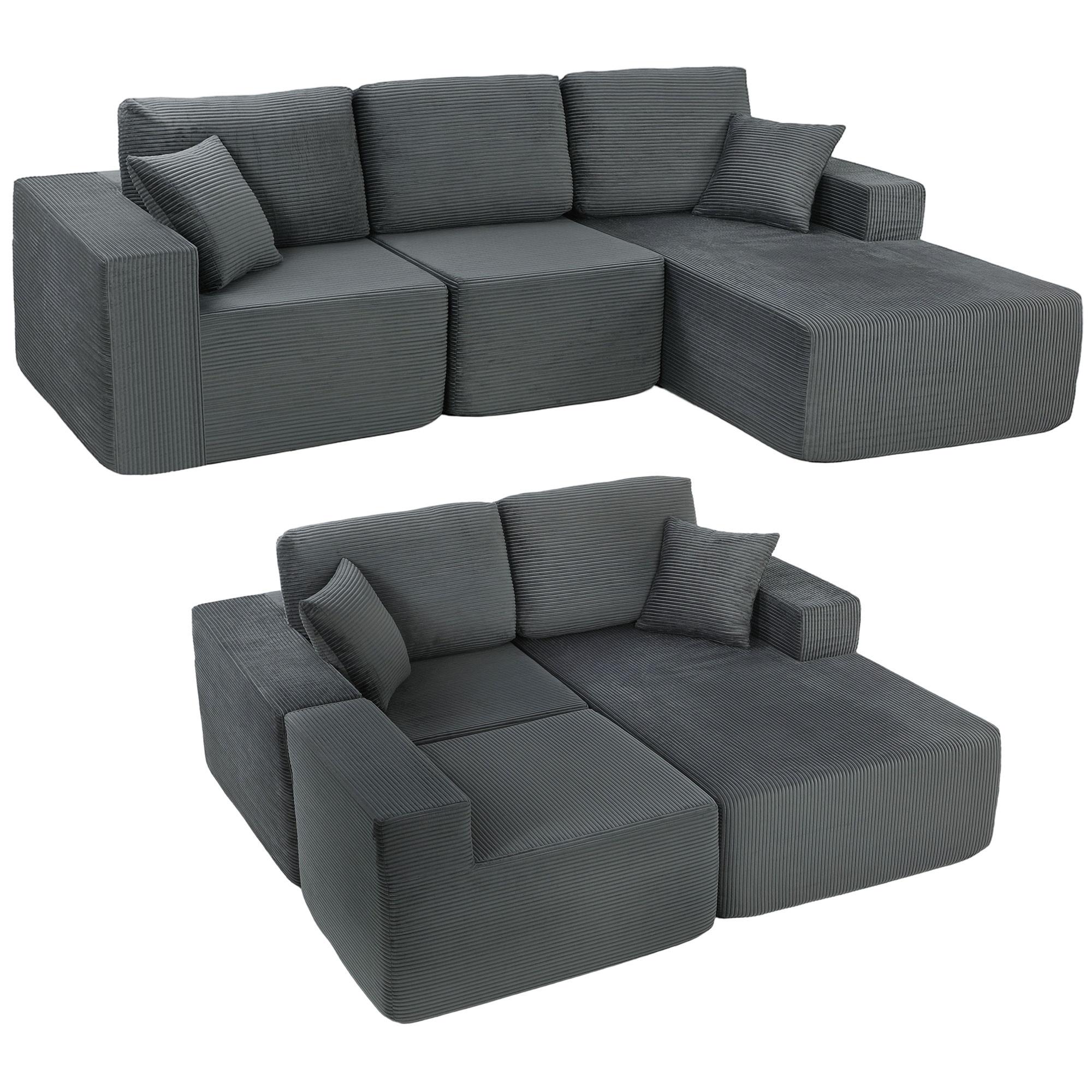 Verwandeln Sie Ihren Wohnraum mit dem HOMCOM Modularen Ecksofa! Das vielseitige 2-in-1-Design ermöglicht den Wechsel zwischen einem geräumigen L-förmigen Sofa und einem gemütlichen Schlafsofa – ideal für Unterhaltung oder Entspannung. Genießen Sie den Komfort von hochdichtem Schaumstoff, der sich Ihrem Körper anpasst und dennoch stützend bleibt. Mit weichem Cordstoff bezogen, verleiht diese Eckcouch jedem Raum einen Hauch von Retro-Charme.